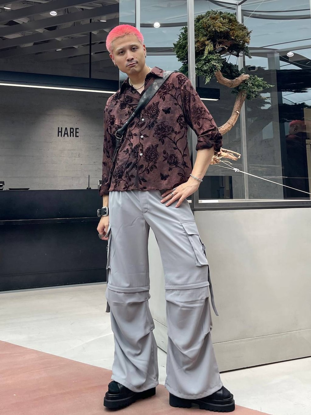 ◉シャツ◉ おとなしめなむら染め+フラワー柄で普通の柄シャツと差別化したデザイン!きれいめなスラックスとも合うし、ジーンズとのヴィンテージライクなスタイルにもピッタリ!✨ ◉パンツ◉ レディースで大人気カーゴパンツにメンズバージョン登場!!🥹HAREでは定番のポリエステル素材、膝部分で外せるマルチウェイデザインがモードに決まる!!膝下のタックのおかげで、ウェーブ上に立体感あるシルエットが出るのも特徴です!!🔥