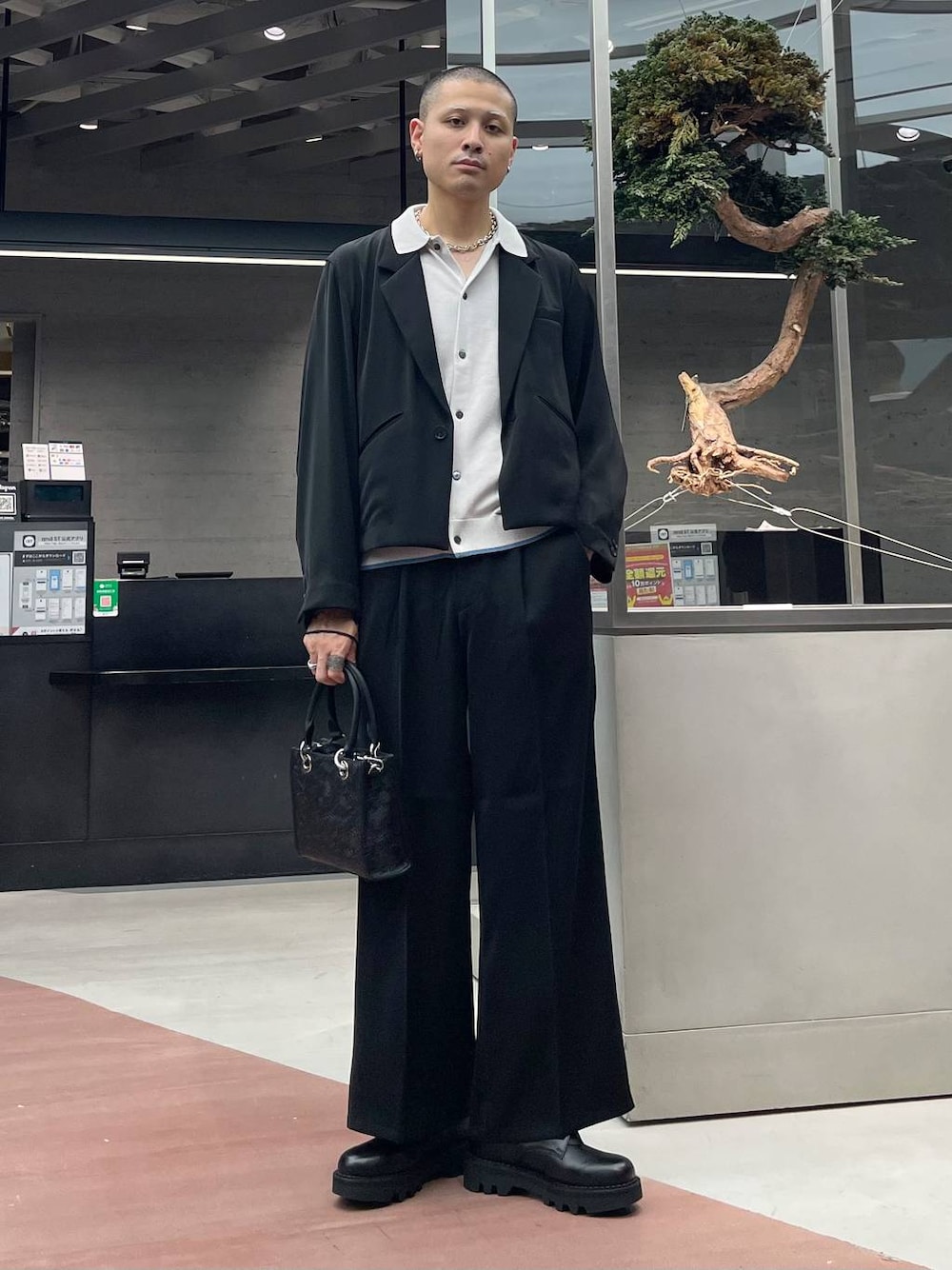 ◉ジャケット◉ HAREの代名詞「TOROMI」素材を使ったテーラードジャケット!身幅や肩幅には余裕を持たせつつも、ショート丈でスッキリ見えするシルエットです!裏地がついていないので、シャツ感覚で羽織れます! ◉ニット◉ 中性的なシルエット・デザイン!ややコンパクトながらも窮屈感は全く無い!袖や裾の溜まり具合が絶妙!!シャツと同じように一枚着〜羽織りまでさまざまな着回し対応が可能です!! ◉パンツ◉ HAREと言えばのトロミ生地!!テロテロで落ち感があり、最高の履き心地!!🤤センタープレスが入っていて、若干フレアシルエットなので美脚効果も発揮!!🔥