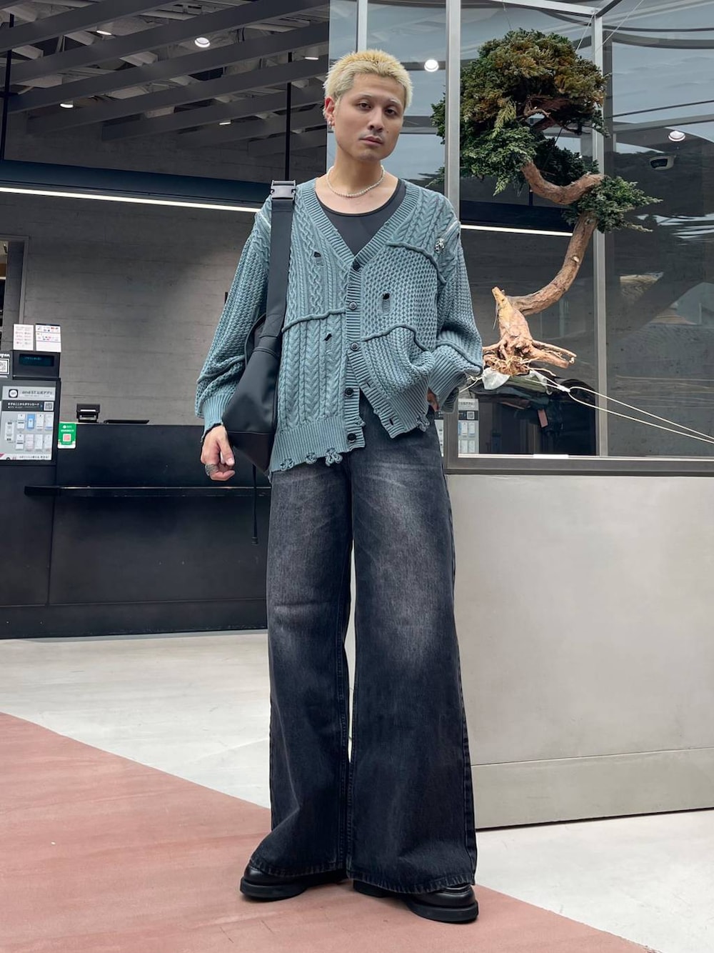 ◉カーディガン◉ ダメージ加工+ちょいヘビーな切替ニットでグランジ気分なカーディガン!!zipが付いているのでモードスタイルにミックスさせてもおもしろい!春先まで使える生地感!! ◉パンツ◉ 個性的なカラバリデニムパンツ!!さらにヴィンテージのような色が抜けた加工がされていて、アクセントに!!通年で使えるアイテム!!フレアシルエットで脚長効果もあり🔥トップス次第で雰囲気もガラッと変わるので幅広いスタイリングがくめる!