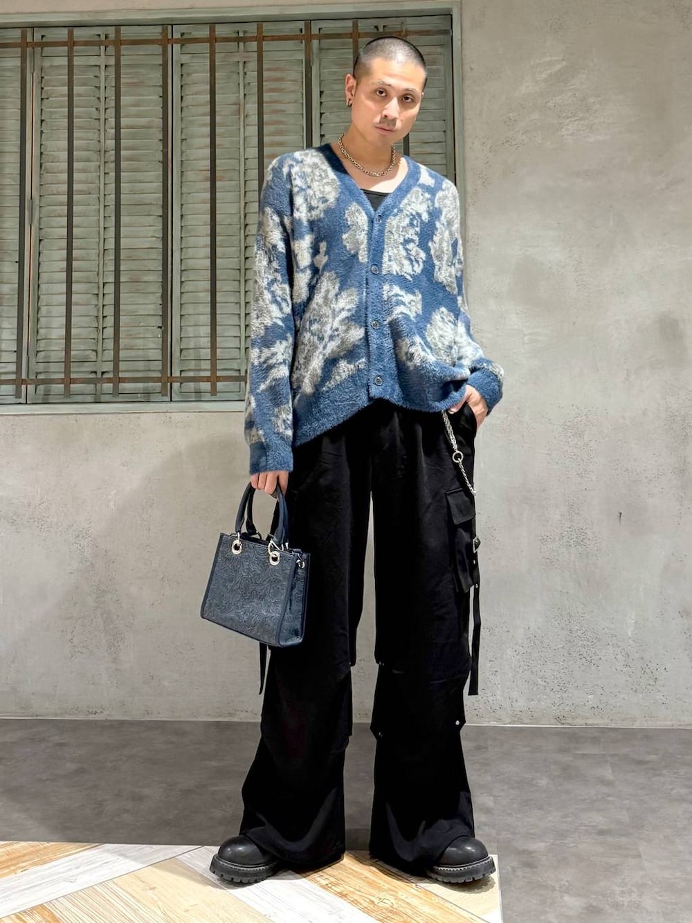 ◉カーディガン◉ 今季もトレンドのシャギーニット!!他のニットに比べて保温性と個性は間違い無し!!上品かつモードな花柄がスタイリングのアクセントに!毛玉になりにくいので、長く使える!ユニセックスでおすすめです🔥 ◉パンツ◉ レディースで大人気カーゴパンツにメンズバージョン登場!!🥹HAREでは定番のポリエステル素材がモードに決まる!!膝下のタックのおかげで、ウェーブ上に立体感あるシルエットが出るのも特徴です!!🔥