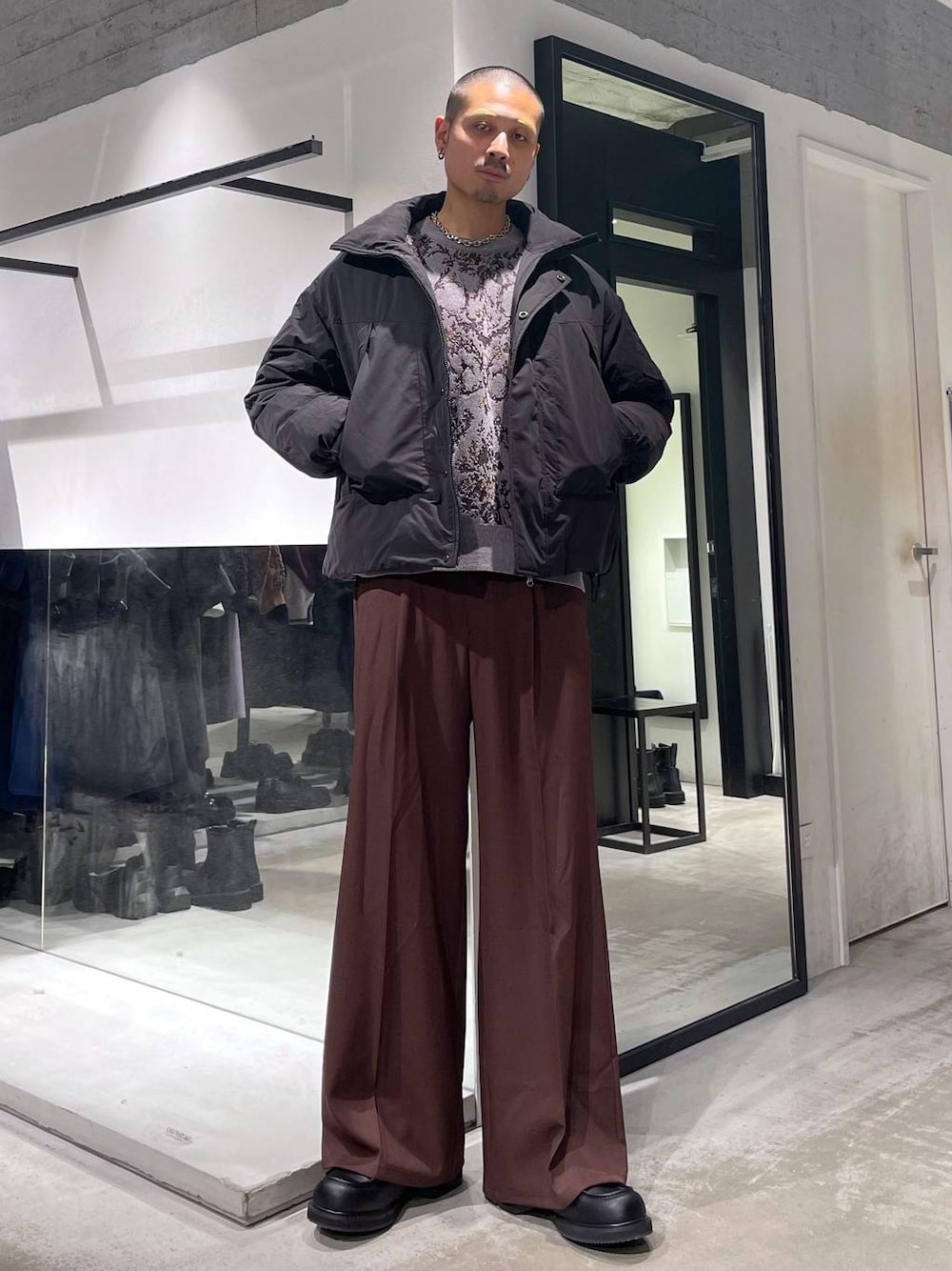 ◉ブルゾン◉ 自社開発「エアサーマル」という中綿使ったブルゾン!見頃の大きなポケット、内側にも大きめのポケットが付いていてユーティリティあふれるデザインに!!バッグを持たなくても出掛けられちゃうのはめちゃくちゃ便利!! ◉ニット◉ HAREで毎シーズン大人気のモールニットプルオーバー!柔らかくチクチクしない、毛玉になりにくく手入れもしやすいニットです!✨ダマスク柄で大人っぽく、渋さのあるスタイリングに! ◉パンツ◉ ギャバジン織というハリ感や光沢感、耐久度が特徴の生地を採用したフレアスラックス!!美脚・脚長効果はご存知の通り、滑らかな肌触りも🙆🏻♂️汎用性が高くヘビロテできるから何本持ってても間違いないパンツです!!