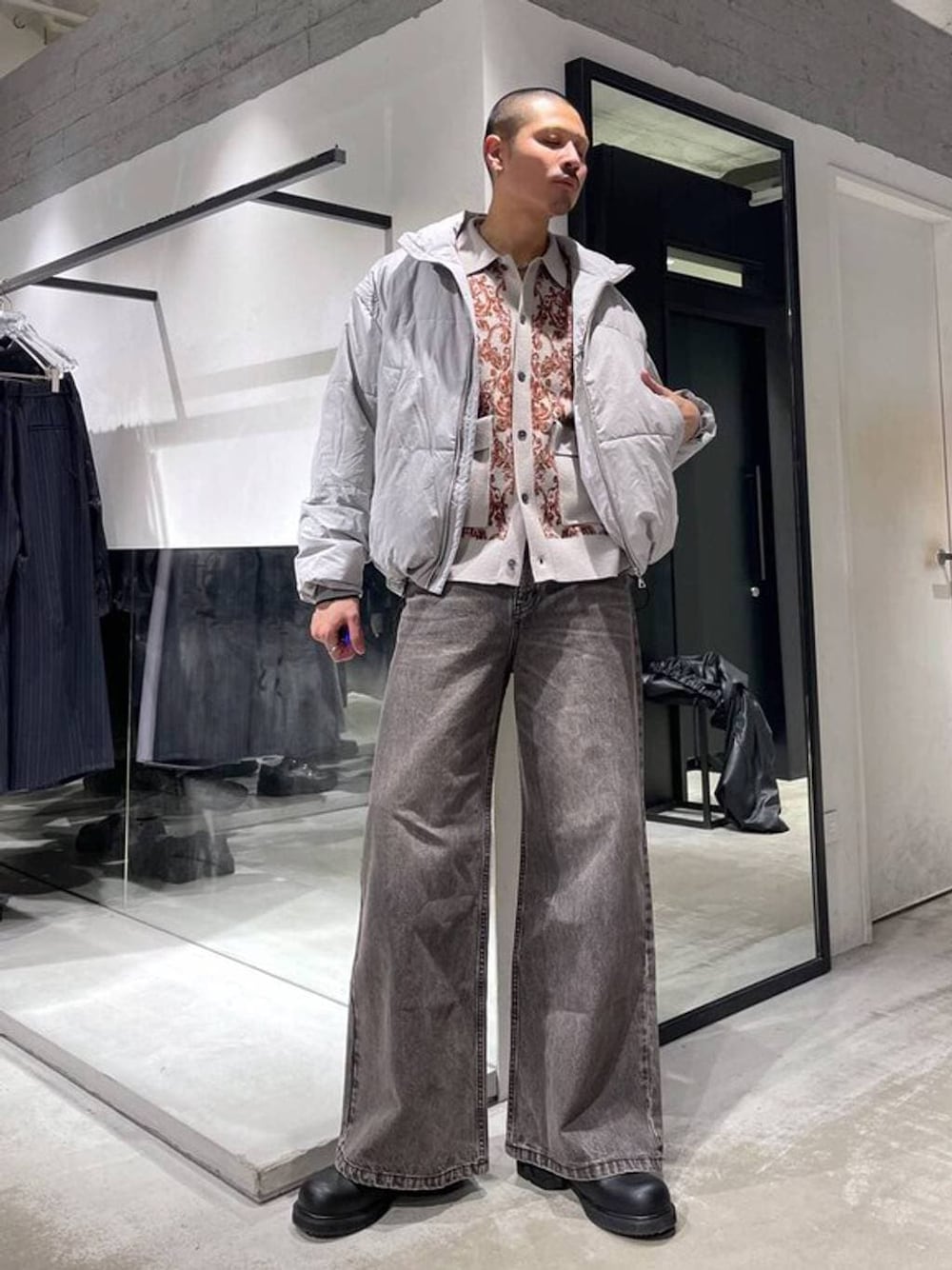 ◉ブルゾン◉ 自社開発「エアサーマル」という中綿使ったブルゾン!普通の中綿ブルゾンには飽きたでしょ?これは袖を外すこともできる個性派デザイン!ベストにすれば秋や春にも使えます! ◉ニット◉ 激渋ダマスク柄ニット!シャツ型ニットだから一枚着と羽織りどちらもイケちゃう万能ニットです!ハイゲージで滑らかな素材感なので着心地良し!生地は厚すぎないので春や秋にも使えます! ◉パンツ◉ 個性的なカラバリデニムパンツ!!さらにヴィンテージのような色が抜けた加工がされていて、アクセントに!!通年で使えるアイテム!!フレアシルエットで脚長効果もあり🔥トップス次第で雰囲気もガラッと変わるので幅広いスタイリングがくめる!
