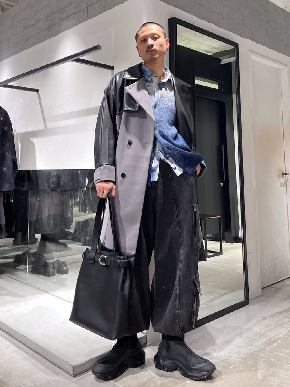 ◉ロングコート◉ 自社開発の「ウーリーテック」素材を使ったロングコート!!ウールのように温かいのに軽くて柔らかく、コスパ最強のロングコート!フェイクレザーとの切り替えでハード過ぎないシックかつ個性的な雰囲気で着用できます! ◉カーディガン◉ 今年もトレンドモヘアニット!グラデーションがモードで、スタイリングのアクセントに使いやすい!オーバーサイズで羽織るだけで様になる!チクチク感もあまり無いのでストレスフリーです! ◉シャツ◉ HARE定番のポリエステル花柄シャツ!ぼかし柄×花柄でモードを表現!シワになりにくく手入れがしやすい!肌触りもサラサラで春まで使える万能シャツです! ◉パンツ◉ ピグメント加工のハードな見た目に反して柔らかいスウェット生地でストレスフリー!ウエストがゴムでドローコードが付いているので、楽に履ける仕様!裾を絞ることでシルエットに変化をつけることもできます!!