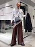 はのやん(HAREルミネエスト)のスラックス「【SET UP対応】ポリエステルイージーギャバワイドフレアパンツ(HARE)」を使ったコーディネート