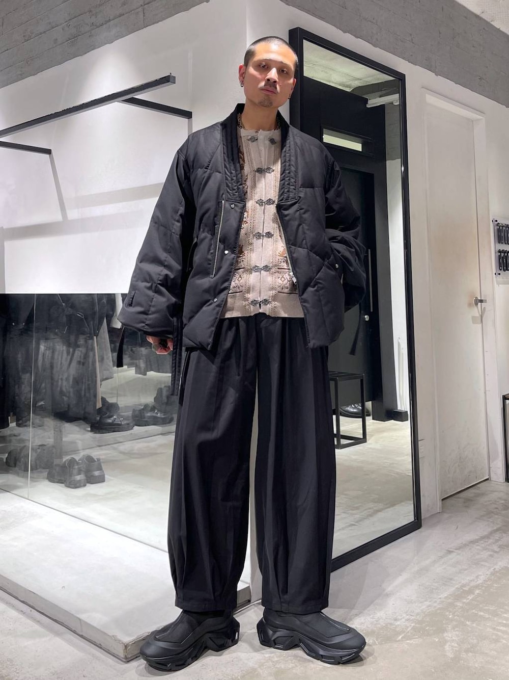 ◉ブルゾン◉ 和モードスタイル「YOSE」シリーズからダウンブルゾン登場!!作務衣をモチーフに使いやすくも、個性的なデザインで他と差別化!袂のようなワイドな袖がアクセント!パーカーやシャツとレイヤードすれば普段使いしやすいです! ◉ニット◉ 激渋ダマスク柄ニット!シャツ型ニットだから一枚着と羽織りどちらもイケちゃう万能ニットです!ハイゲージで滑らかな素材感なので着心地良し! ◉パンツ◉ HAREの大人気シリーズ「YOSE」!!和モードなプリーツデザインがたまらない!!袴のようなディテールでシンプルになりやすい春夏のスタイリングにアクセントをつけてくれる!🔥コクーンシルエットで普段のモードスタイルに使いやすい!!裾がたまるので、身長関係無く着用できます!
