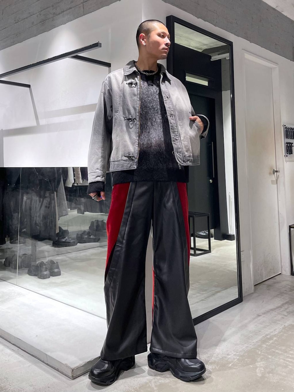 ◉ブルゾン◉ ファイヤーマンバックルがアクセントに!ヴィンテージライクな雰囲気がたまらない!ショート丈で脚長効果が抜群!真冬に使えるデニムブルゾンは少ないですが、中綿が薄く入っているのでこれからの時期に使えるブルゾンです! ◉ニット◉ 全色かわいい。程よい起毛感とモードなニュアンス柄がたまらない!!軽くて厚すぎないので秋から使えるし、真冬もインナーとして大活躍してくれます!ヘンリーネックだからボタンを開ければ首元に抜け感をつけられる! ◉パンツ◉ 3種類の生地を切り替え・個性的なシルエットにこだわったカーブデザインで他と差別化!トップスがシンプルでも主役を張ってくれるようなアイテムです!