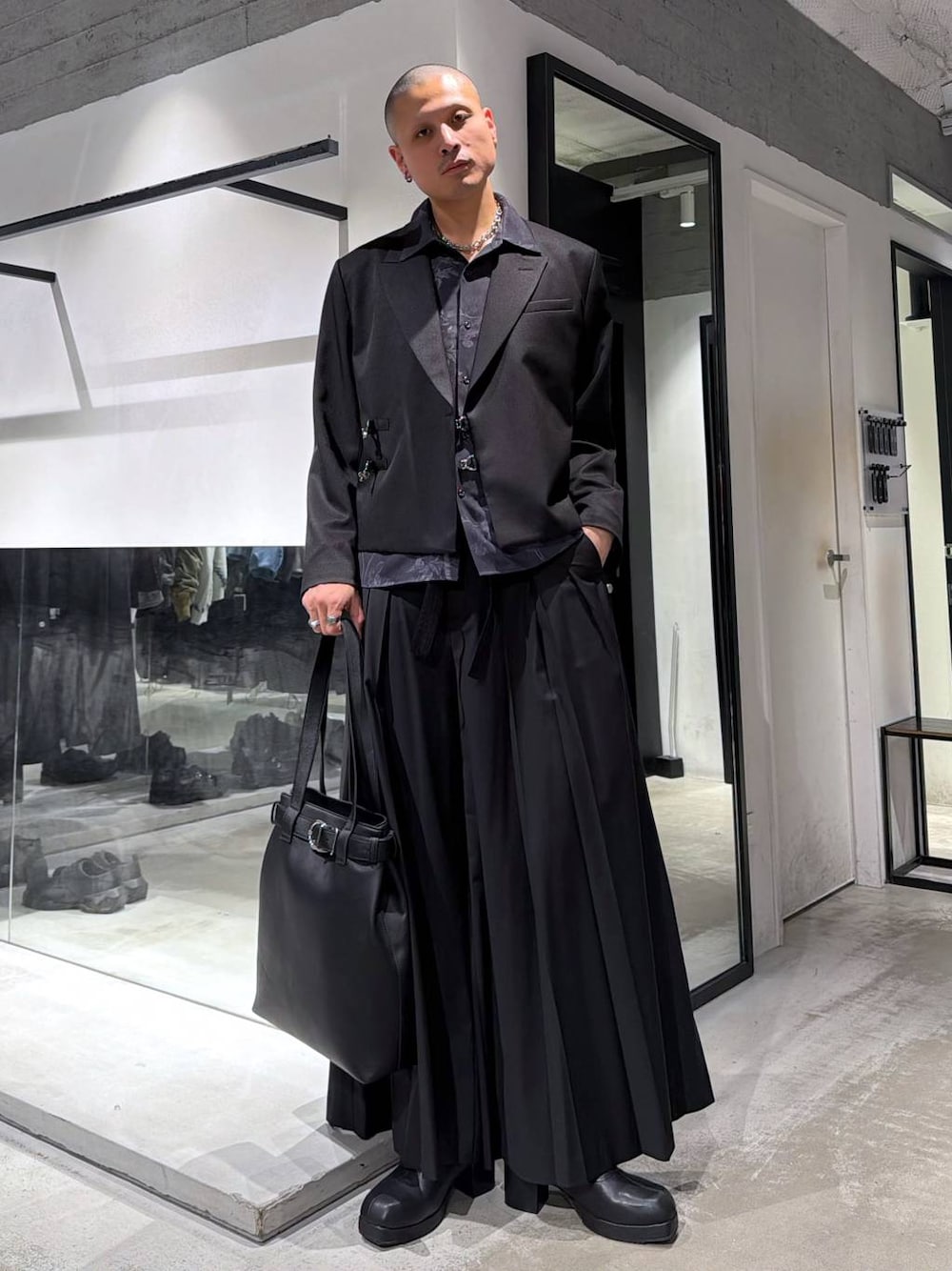 ◉ジャケット◉ メタルボタンがアクセントのショートジャケット!普段使いもしやすいデザインで助かる!少し光沢のある素材が高級感も演出!セットアップでの着用やラフにジーンズと合わせるのがおすすめ! ◉シャツ◉ HARE定番のポリエステル花柄シャツ!ぼかし柄×花柄でモードを表現!シワになりにくく手入れがしやすい!肌触りもサラサラで春まで使える万能シャツです! ◉パンツ◉ HAREの大人気シリーズ「YOSE」!!和モードなプリーツデザインがたまらない!!袴のようなディテールでシンプルなスタイリングにアクセントをつけてくれる!🔥今回の新作は更に布をレイヤードさせたデザインでより洒落る!