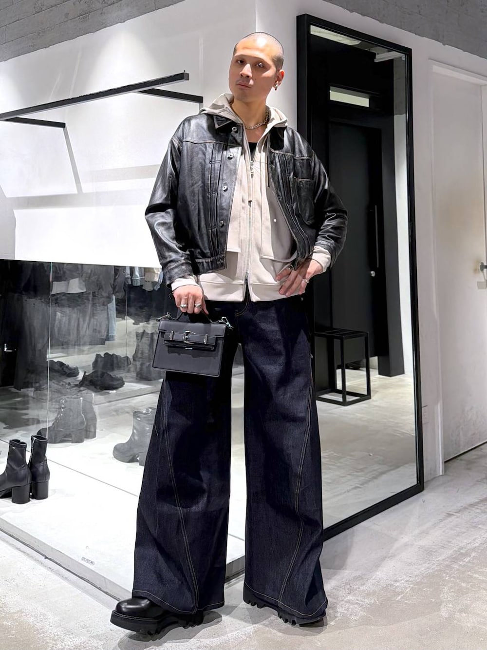 ◉ブルゾン◉ 冬には是非取り入れたいレザーブルゾン!特に高級感、素材にこだわりたい、長く使いたい方には絶対リアルレザー!!ラムレザーはもとから柔らかくハードさが抑えめなので、きれいめなスタイルになじみやすい! ◉パーカー◉ 個性的なレイヤードデザイン、秋冬らしいスウェードライクな生地で他と差別化!カジュアルになりやすいパーカーをモードに昇華!ZIPをすべて閉めるとスタンドカラーになるのもポイント! ◉パンツ◉ 立体的なシルエットが特徴のデニムワイドパンツ!温かい時期にトップスがシンプルになりやすいので、デザインボトムスはこれからの時期に重宝する!短丈のブルゾンやトップスとの合わせがおすすめ🔥