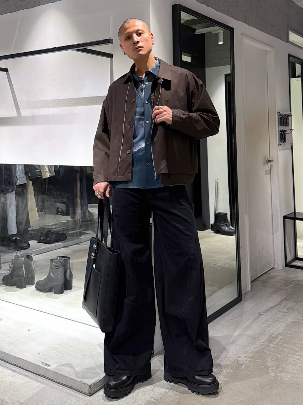 ◉ブルゾン◉ きれいめ×カジュアルなデザインで汎用性◎過度に個性的なデザインも施していないので、様々なインナーやボトムスと合わせやすいのがポイント!レーヨンやウールを使う事で高見えする生地感になっています。 ◉シャツ◉ インクを混ぜた様なアブストラクト柄でモードにきまる!!ベースは使いやすい落ち着いたカラーなのでアウターやボトムスもモノトーンにしてあげれば意外と合わせやすい!ポリエステル生地でテロテロしているので着心地いい&シワになりにくいで◎ ◉パンツ◉ 立体的なシルエットが特徴のデニムワイドパンツ!温かい時期にトップスがシンプルになりやすいので、デザインボトムスはこれからの時期に重宝する!短丈のブルゾンやトップスとの合わせがおすすめ🔥