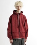 ◉ブルゾン◉ 滑らかな肌触りと上品な光沢感がある汎用性の高い素材「CLEAR TEXTURE」。 きれいめ×カジュアルなデザインで汎用性◎過度に個性的なデザインも施していないので、様々なインナーやボトムスと合わせやすいのがポイント!レーヨンやウールを使う事で高見えする生地感になっています。 ◉パーカー◉ 個性的なレイヤードデザイン、秋冬らしいスウェードライクな生地で他と差別化!カジュアルになりやすいパーカーをモードに昇華!ZIPをすべて閉めるとスタンドカラーになるのもポイント! ◉パンツ◉ 独特なタックデザインパンツ!!立体的なシルエットが出てモード・きれいめスタイルにピッタリ!!✨ポリエステル素材なのでサラッとストレスフリーで着用頂けます!!
