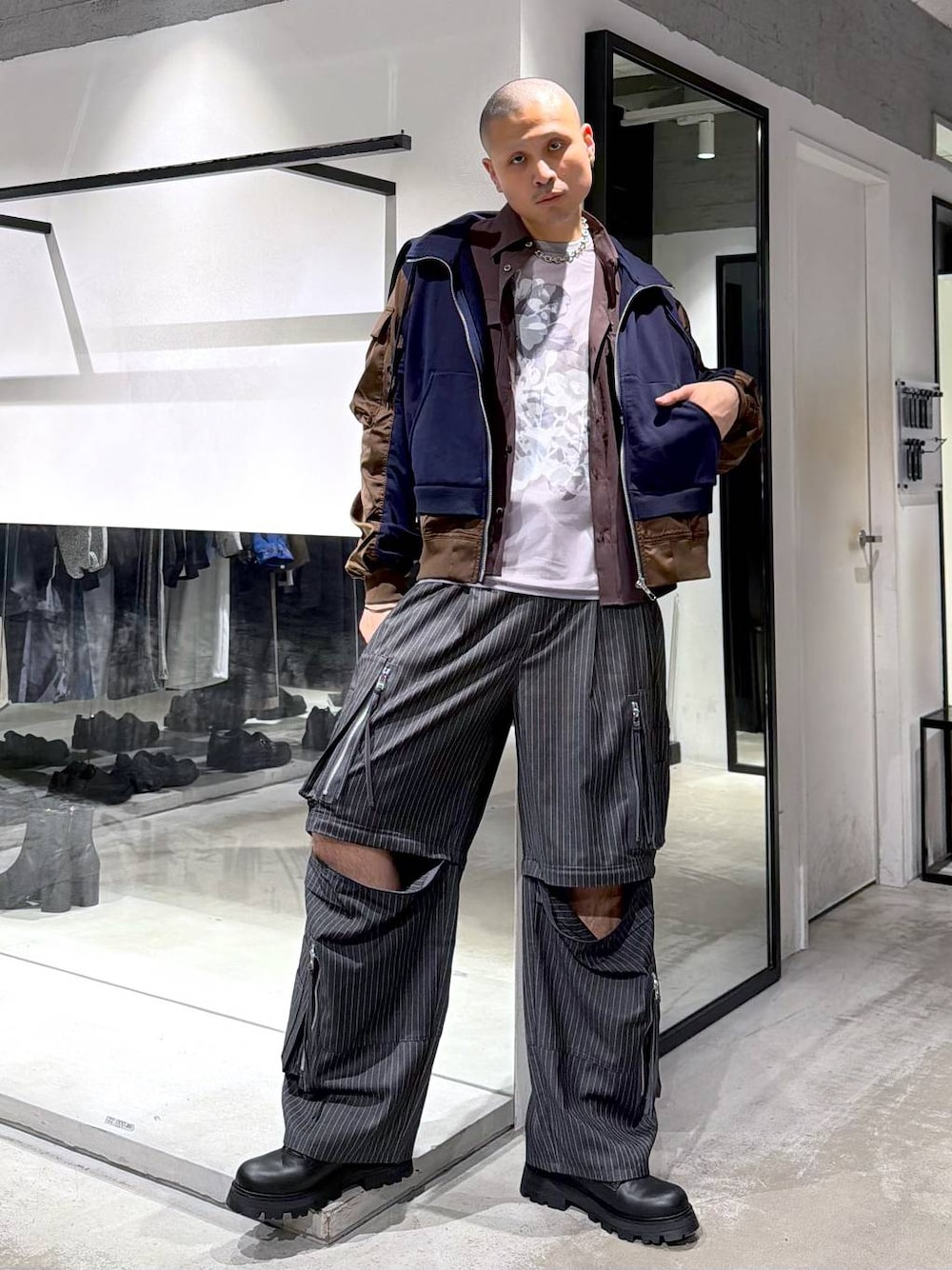 ◉パーカー◉ 袖だけMA-1。ありきたりなパーカーがスタイリングの主役に昇華。これを羽織ればシンプルなカジュアルスタイルも個性的なモードスタイルに。やや短丈なので程よくトレンド感も取り入れつつ脚長効果も発揮してくれるデザインパーカーです。 ◉カットソー◉ モードなシアーレイヤードデザインカットソー!メンズでもマストのシアーアイテムですが、これなら最初からインナーもくっついているから楽に洒落るアイテムです! ◉パンツ◉ 帰ってきました!2WAYカーゴパンツ!!今回は滑らかな肌触りと上品な光沢感がある汎用性の高い素材「CLEAR TEXTURE」で登場!!カジュアルながらもきれいめも対応可能!!ウエストがゴムでストレスフリーです!
