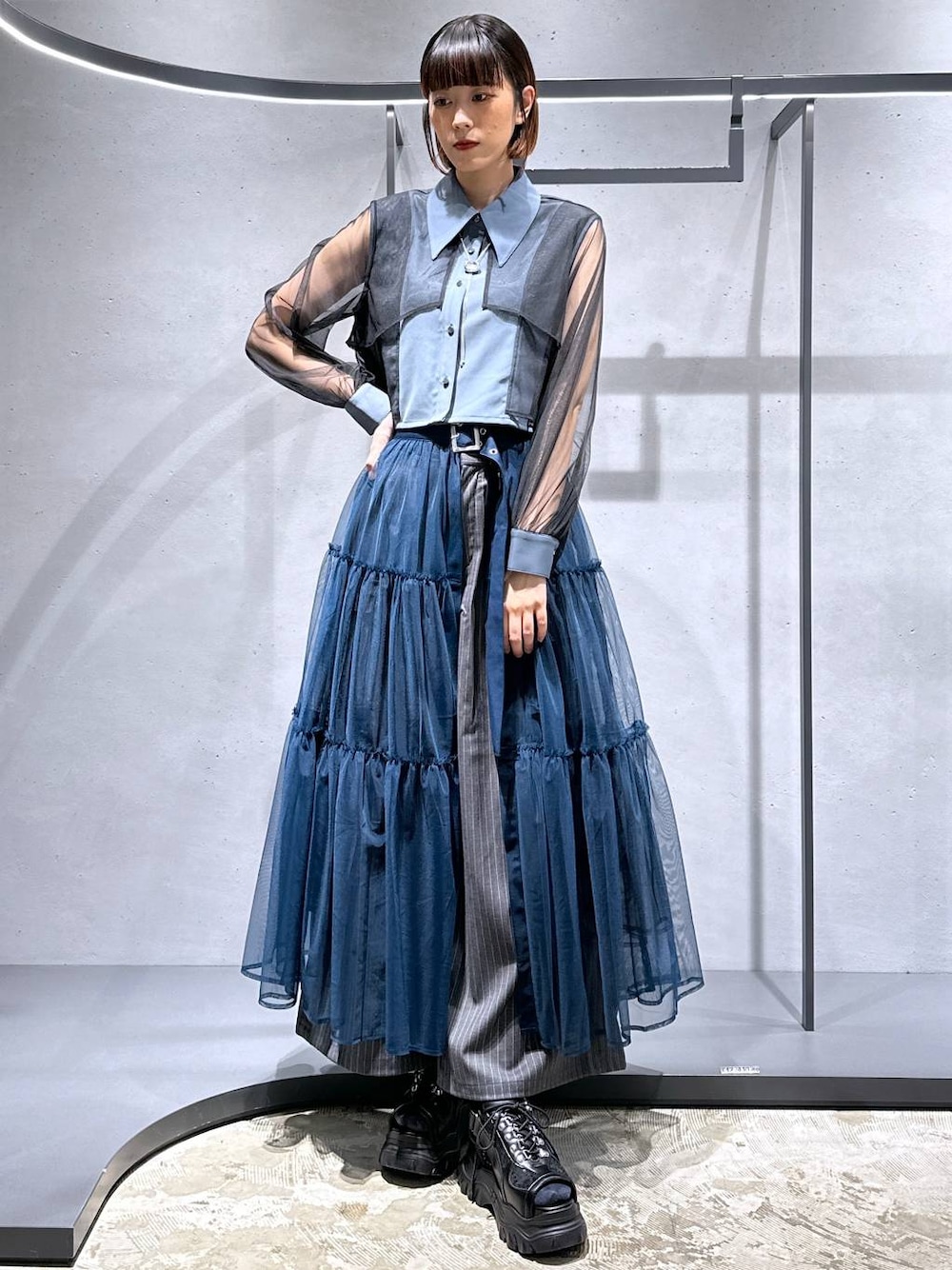 169㌢高身長女子 【アイテム詳細はタグor下のアイテムからcheck】 シャツ[シアーレイヤードシャツ] 袖がシアーになっているデザイン性抜群のシャツ! ◉身頃がレイヤードになっていて立体感🙆 ◉ショート丈なのでスタイルアップもします♪ ◉軽い着心地で羽織り出来るとより涼しく着れます🫶 襟が大ぶりなのでアクセントにもなりますよね☺︎ スカート[チュールベルトスカート] チュールデザインで持っているボトムスにプラスワンで重ねるとめちゃくちゃ可愛くなります🫶 ◉内側が グレー→エメラルドグリーン ブルー→ブラック ブラック→グレー ◉お尻周りが隠せるので機能性も🙆🏻♀️ ショートパンツに合わせるのも可愛いです☺️ パンツ[メタルジップワイドカーゴパンツ] メッシュのみショーパン風です! ◉形が何より綺麗でワイドなのでゆったり着れます! ◉裾が絞れるので身長問わず着ていただけます🫶 ◉メッシュ以外サラッと落ち感のある素材で涼しい♪ 夏用の素材でサラッと落ち感のある素材なので着心地抜群!