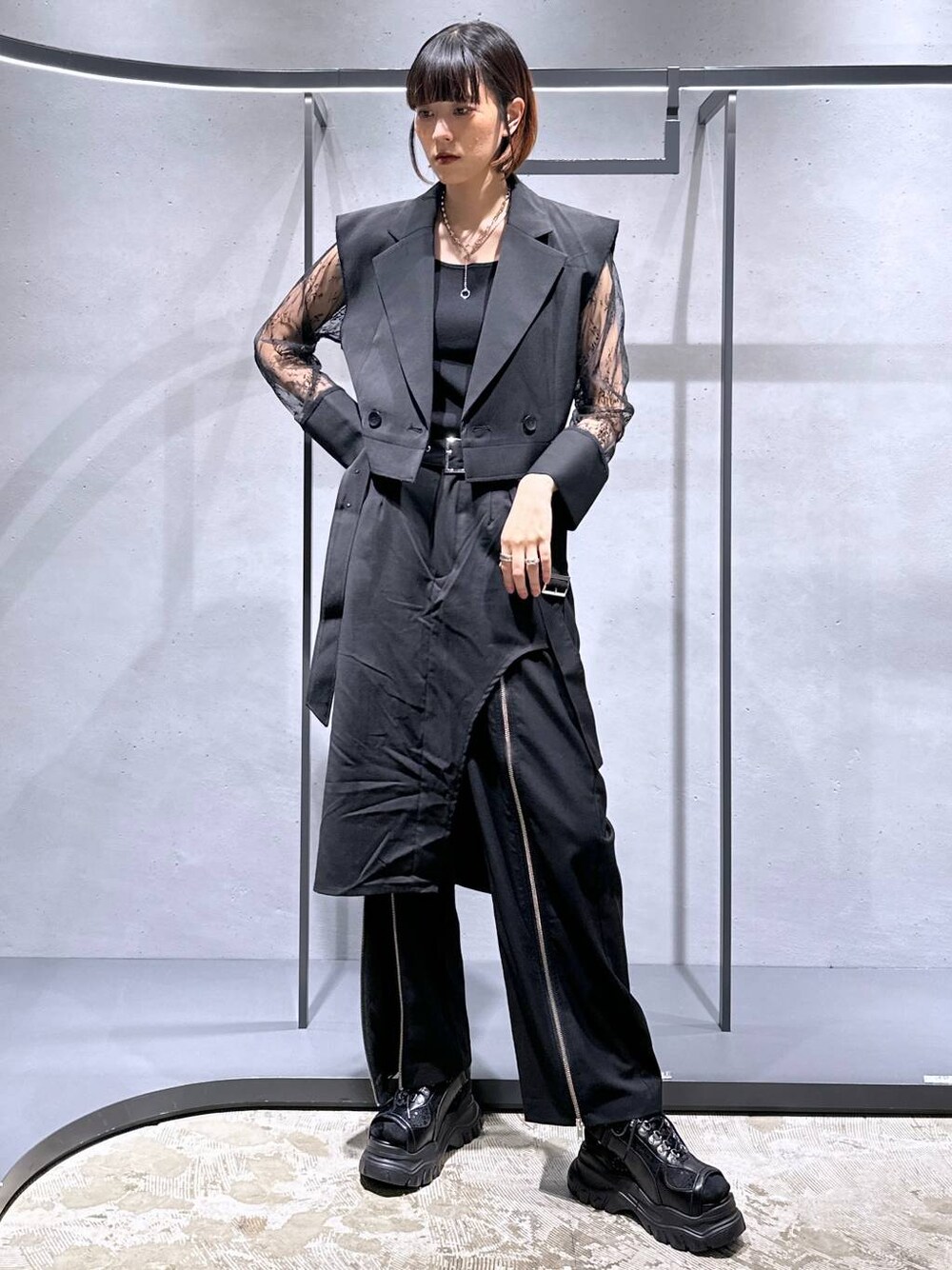 169㌢高身長女子 【アイテム詳細はタグor下のアイテムからcheck】 HAREレディースの新ライン、エッジモード! モノトーンを基調に尖ったデザインを展開! メンズライクもレディライクも両方ハマるそんなラインナップです🖤 ジャケット[ソデレースショートジャケット] ジレ調に袖がエレガントなレースになっています! ◉袖の透け感は女性らしく薄手なので涼しいです🫶 ◉身頃は肩がしっかりあり少し浮くデザイン! ◉ショート丈なのでスタイルアップ抜群🔥 夏でも快適に着れるモードスタイルです☺︎ パンツ[レイヤードジップパンツ] スカパンです! ◉中のパンツはセンタージップで開閉可能! 肌見せするもよし、スリット感覚で開けるのも🙆🏻♀️ ◉全体的なシルエットは真っ直ぐでトレンド感があります🫶 ◉素材は柔らかめで薄手になります! 丈感は私の身長で骨盤くらいで履くと◎ ローウェストで履いても股上が隠れるのでスタイルが崩れる心配もありませんよ〜!