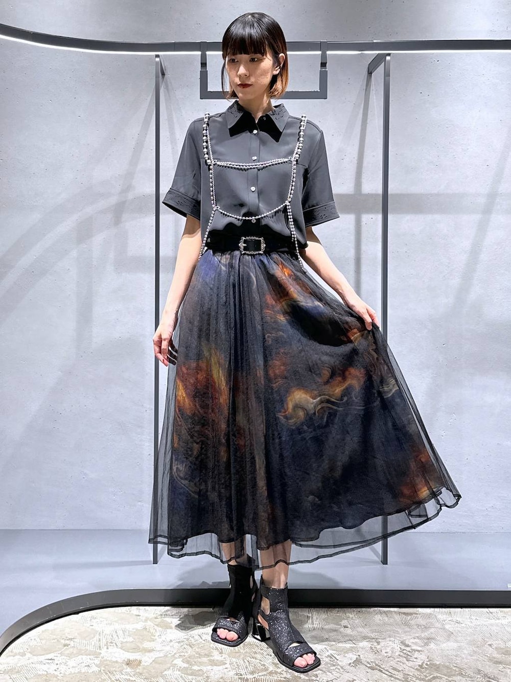 169㌢高身長女子 【アイテム詳細はタグor下のアイテムからcheck】 ここに日記書いてたんですがそれをインスタメインでしていこうと思ってるので是非インスタもフォローお願いします🥰 シャツ[レーザーカットシャツ] 襟と袖にレーザーカットが施されています! ◉サラサラでシワのつかない素材! ◉汗染みもつきにくいかと✨ ◉シャツの形はレギュラーシャツなので使いやすさも🫶 スカート[ジュピターシアープリーツスカート] GRAVITYがテーマのアイテム🪐 土星の模様のようなブラーなデザインが特徴です! ◉柔らかいプリーツのシアーが重なっていることで柔らかい柄感になります🫶 ◉軽い着心地でフワッとしたフレアスカートです! 丈感は私の身長で足首がっつり見えるくらいです☺︎