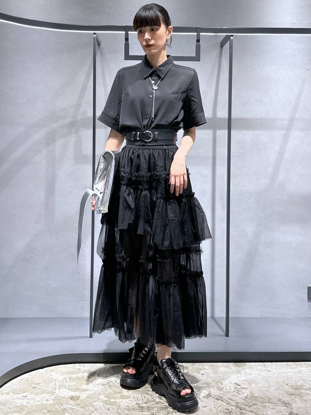 169㌢高身長女子 【アイテム詳細はタグor下のアイテムからcheck】 シャツ[レーザーカットシャツ] 襟と袖にレーザーカットが施されています! ◉サラサラでシワのつかない素材! ◉汗染みもつきにくいかと✨ ◉シャツの形はレギュラーシャツなので使いやすさも🫶 スカート[チュールフリルスカート] 久しぶりに甘々スカートの登場です❣️ ◉パニエのようにチュールを3枚重ねているのでボリュームがしっかり出ます🫶 ◉裏地がミニスカ丈なので太もも真ん中くらいからはチラッと脚が透けて見えますよ♪ なので夏でも涼しげに着ていただけます☺️ ◉チュールの素材はフワフワっとした柔らかい素材! ウエストがゴムで伸縮性がしっかりあるのも嬉しいポイント☑︎