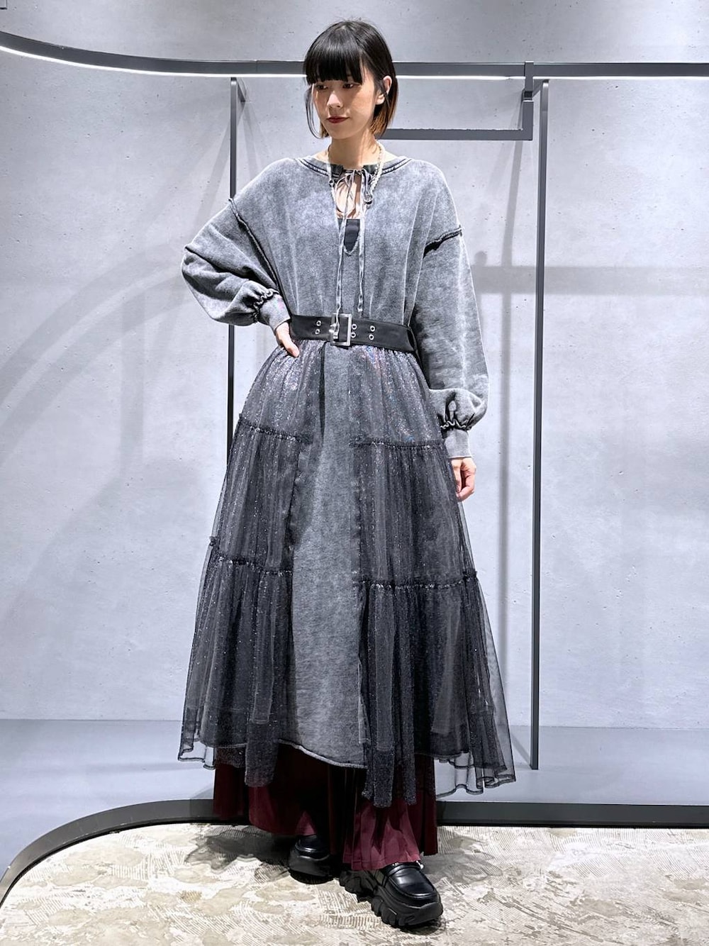 【アイテム詳細はタグor下のアイテムからcheck】 ワンピ[2WAYパウダーカコウワンピース] リアルバイ! ◉前後で使えるカジュアルワンピ! ◉スウェット地で少し薄手なので今の時期から使えます✨ ◉色褪せ加工がお洒落度を出してくれますよ☺︎ パンツ[プリーツワイドパンツ] 袴のような超ワイドシルエット🫶 ◉素材はレザー以外薄手で裏地なしなので1年中使えます、 レザーは目が細かく柔らかいです!少し重さを感じるのでベルト無しだと腰位置で止まる感じです! ◉下半身のシルエットを一切拾わず脚長効果があります! 体感丈長めと感じたので高身長さんにもおすすめです✨✨🥹 スカート[レースチュールベルトスカート] チュールデザインで持っているボトムスにプラスワンで重ねるとめちゃくちゃ可愛くなります🫶 ◉内側が白に近いグレー🩶 ◉お尻周りが隠せるので機能性も🙆🏻♀️ ショートパンツに合わせるのも可愛いです☺️