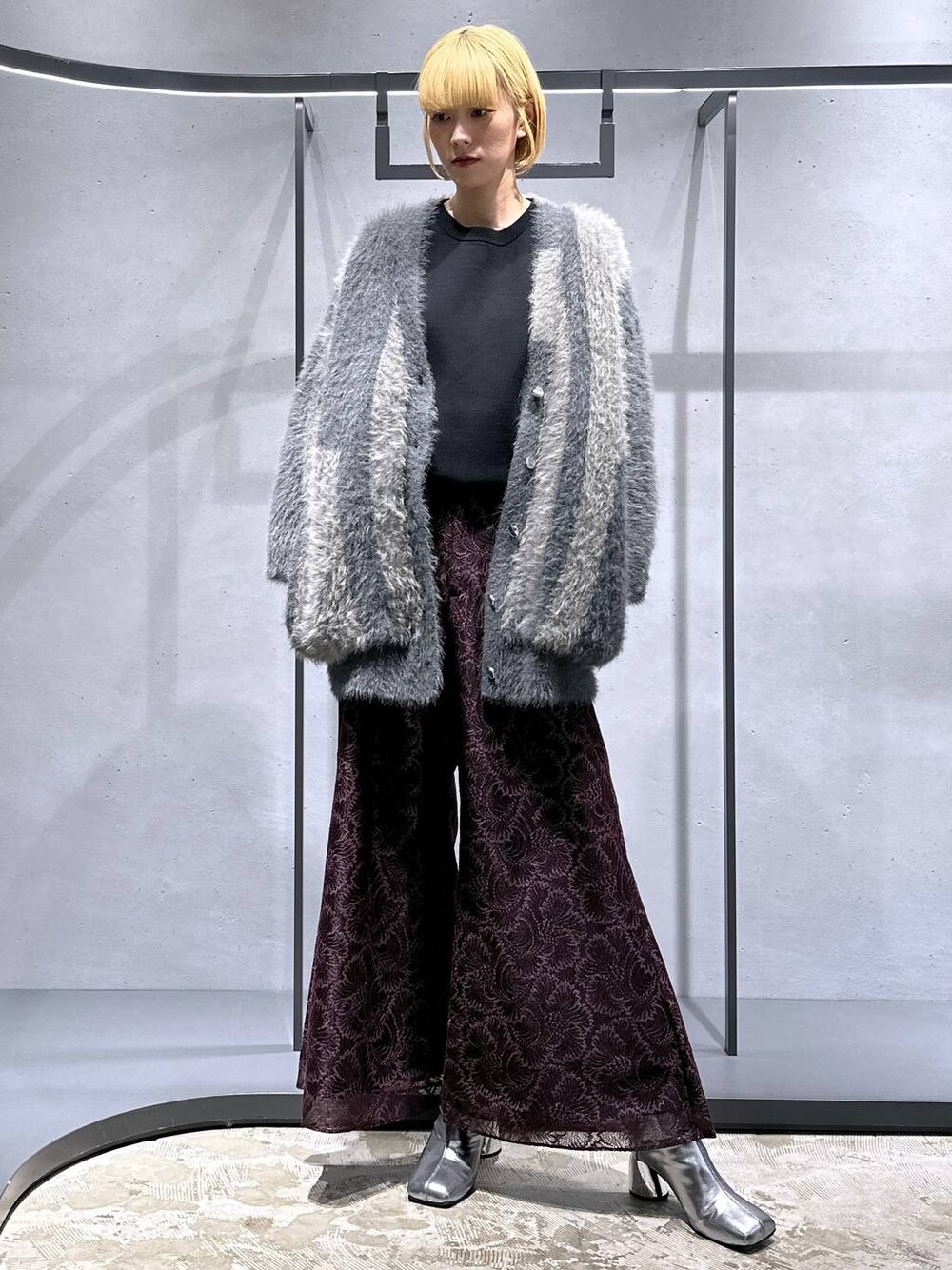 【アイテム詳細はタグor下のアイテムからcheck】 カーデ[バイカラーシャギーカーディガン] 同系色の2色がランダムに配色されていて可愛い! ◉シャギー素材なので毛玉にならず、触り心地も抜群🫶 ◉裏地がついているタイプなのでかなり暖かいです🥹 ◉ポケットもついています! ◉着丈もしっかりあるのでカジュアル/メンズライク/あざと系、と合わせれる系統多数✨ ニット[リバーシブルスリットビッグニットプルオーバー] リバーシブルで使える万能ニット! ◉表裏でかなり雰囲気が帰れるポンチ素材! ◉もちもちしていて毛足がないタイプになります✨ ◉肩のスリットは肌出ししても◎、インナーを入れてチラ見せするのも可愛いです🫶 ◉シルエットはゆったりめでストレスフリーで着ていただけます☺️ パンツ[レースレイヤードフレアパンツ] お久しぶりのワイドフレア! ◉キラキラのレースが個性的でモードな印象に🫶 ◉派手ではありますが顔から遠い位置にあるので挑戦していただきやすいです♪ ◉形はワイドフレアで裾が緩やかに広がっています!
