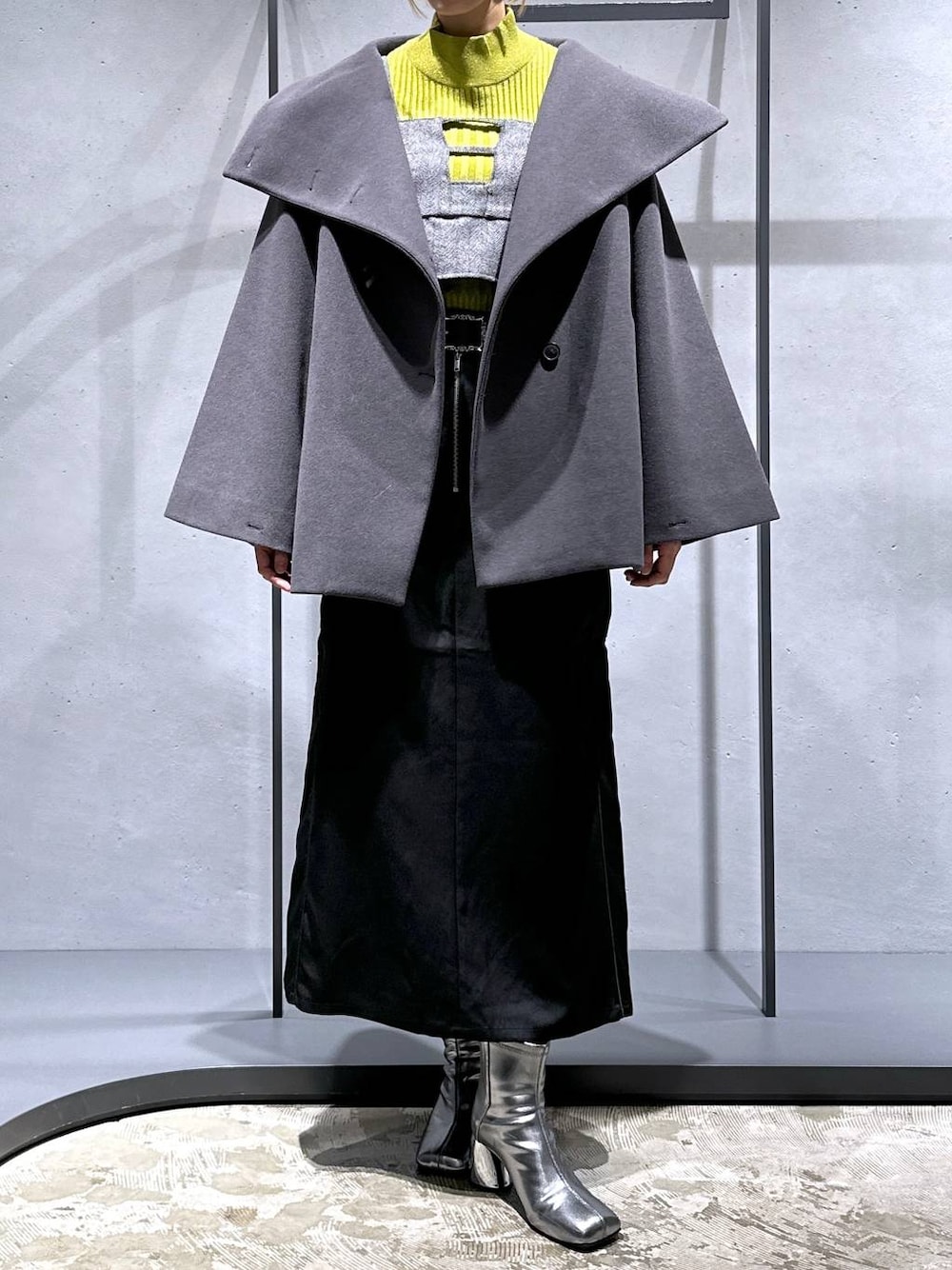 ココロ(HAREヘップファイブ)のチェスターコート「ウーリーテックビッグカラーミドルコート(HARE)」を使ったコーディネート