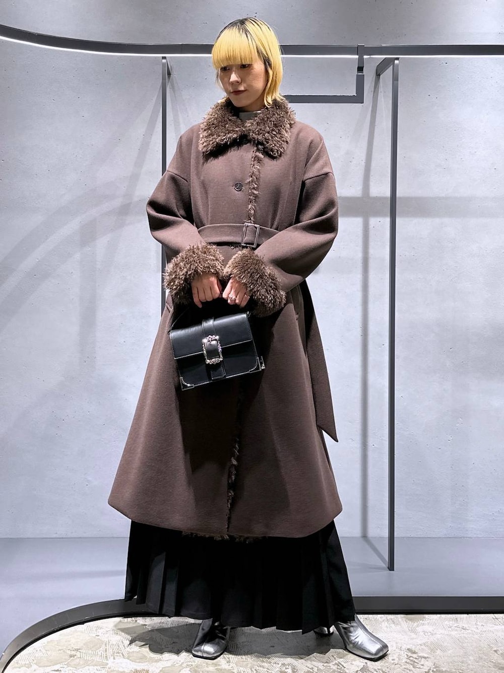 【アイテム詳細はタグor下のアイテムからcheck】 コート[ウーリーテックフェイクファーロングコート] ワンピースのように着れるすっきり見え抜群コート✨ ◉自社開発のウーリーテック素材で軽くて暖かい!! ◉ファー部分は柔らかくすごく気持ちいいです🫶 毛は落ちにくいかと! ◉なにより上半身がすっきり見えるシルエットなのでベルトでキュッと締めると女性らしく着ていただけます🫶 ◉でもしっかり中に着込む身幅はありますよ♪ パンツ[ハカマプリーツワイドパンツ] 袴のような超ワイドシルエット! ◉サラッとした素材で歩くと揺れるのが可愛い🫶 ◉綺麗め/モードといった色んな系統で使えます✨ ◉紐は取り外しが可能で自由に使っていただけます! 丈感は体感少し長めに感じたので高身長さんにもおすすめです♪