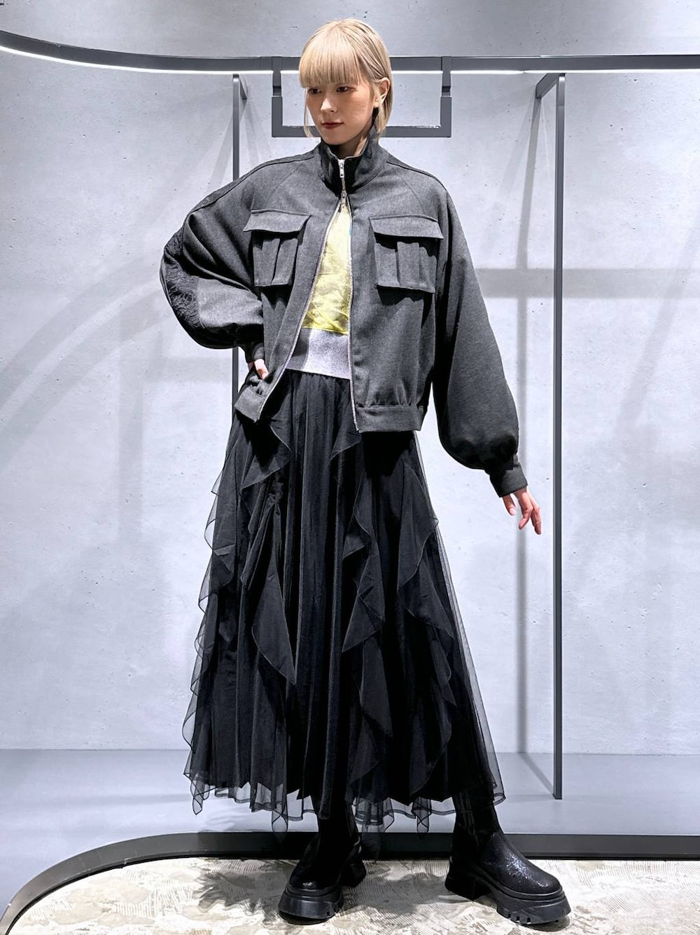 【アイテム詳細はタグor下のアイテムからcheck】 アウター[アソートレースラインブルゾン] ストリートカジュアルな軽めブルゾン🫶 ◉ブラウンはフェイクスウェード素材です! ◉中に着込める身幅と、上から冬のアウターを着ても良い柔らかめの素材です! ◉大きなポケットとダブルジップがポイント☑︎ ◉レース部分は甘すぎないので着やすいです✨ ニット[チュールレイヤーマルチWAYカーディガン] 表裏前後で使える超万能ニット! ◉チュール側の個性的な方と、シンプルな無地側で着回し力抜群になれます🫶✨ ◉肩のカットデザインも可愛いです🥳 ◉毛足のないモチモチ系ハイゲージニットなのでしっかりと暖かいです♪ スカート[シアーレイヤープリーツスカート] 動きのあるデザインとシルエットが可愛いです🥀 ◉ウエストがゴムで体型問わず着れます! 丈が長い方は折って履くこともできますよ〜! ◉チュールがフリルのようになっているのもポイント☑︎ ◉チュールの中はプリーツスカートになっています✨ ◉綺麗めとかわいいが両方楽しめます🫶