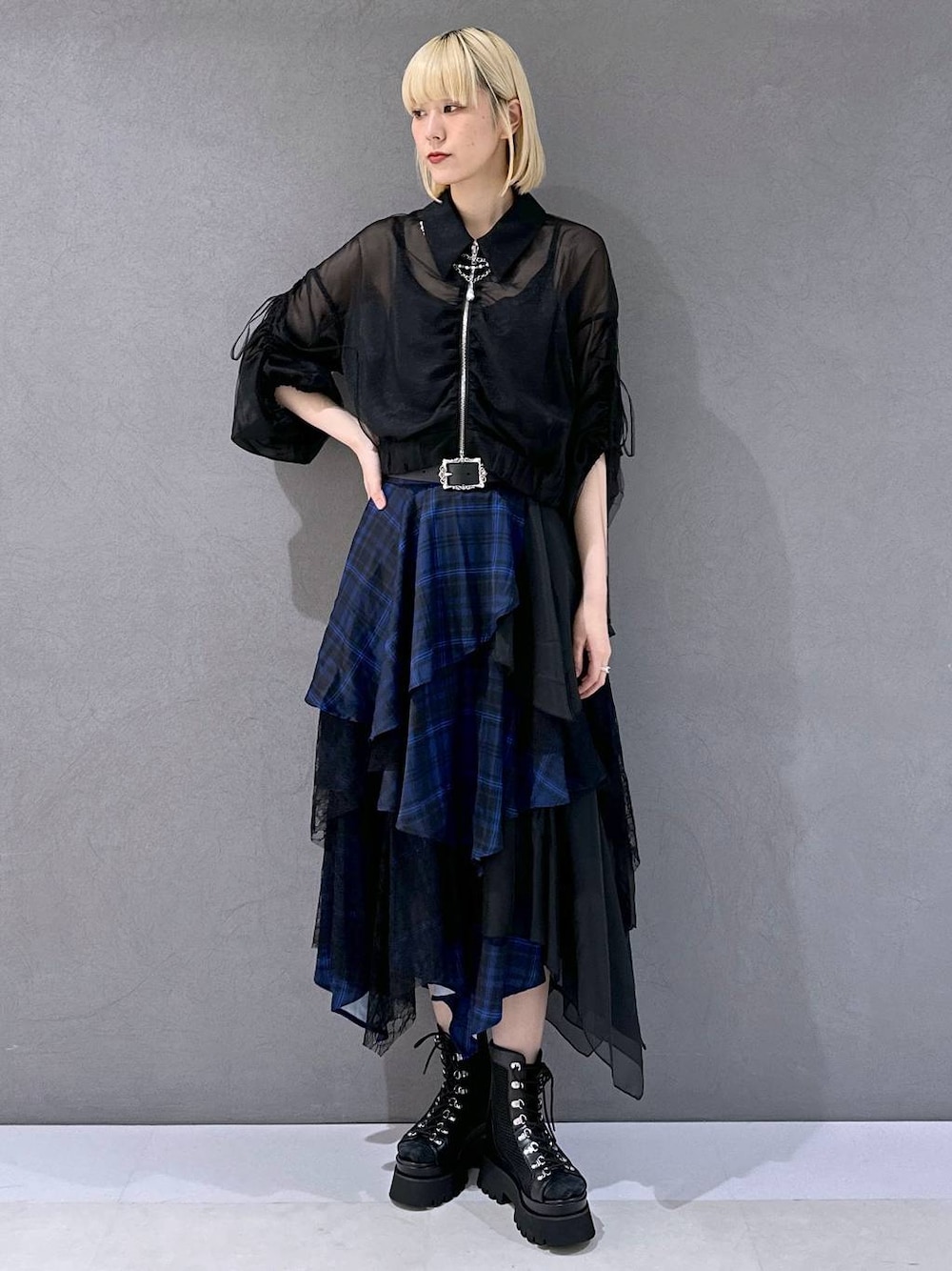 【アイテム詳細はタグor下のアイテムからcheck🏷️】 [ブルゾン] ◉チュール全開ブルゾン! ◉なにより袖のボリュームが可愛くて、紐を絞るとギャザーが寄ってより立体感が出ます🫶✨ ◉透け感はかなり控えめなので肌見せそこまで…みたいな人にも着ていただきやすいです🙌 [スカート] ◉レース×チェックでモード可愛いが叶います❤️🔥 ◉布地を沢山使ったティアードで立体感があります✨ ◉骨盤の張りも気にならないくらいの程よいボリューム感なので着膨れせず体型カバーも🙆🏻♀️ ◉夏でも着れる薄手タイプです!