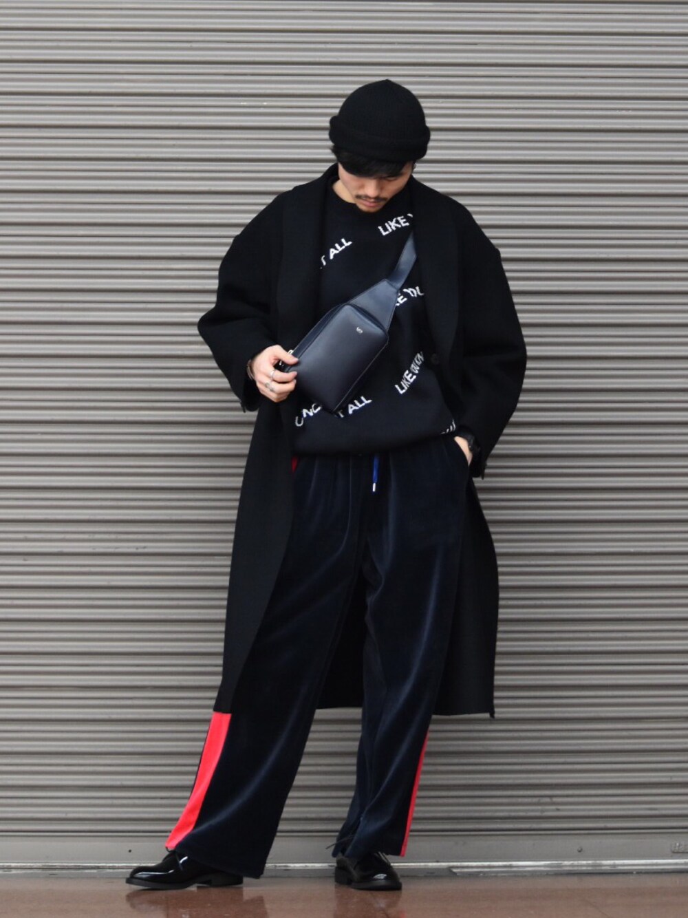 いつもいいねありがとうございます! たまに穿くラインパンツがいい🚩 新鮮なボディバッグがいい🌚 アウターのサイズ感がいい🙆♂️ 革靴の履きやすさがいい😎 好きなモノ、コーデですね😏