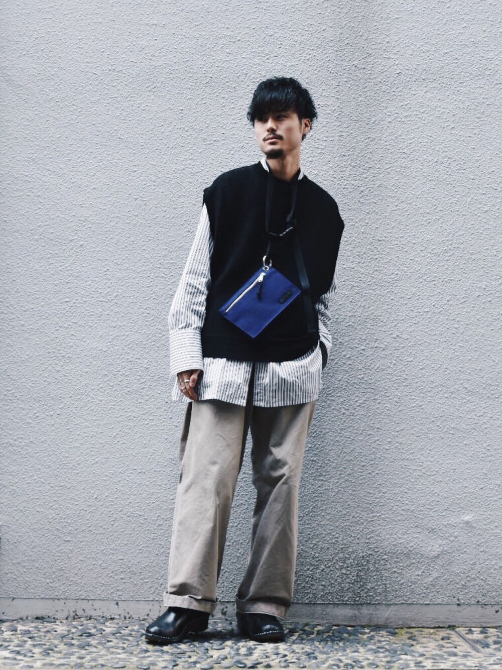 いつもいいねありがとうございます!! 最近はずっとシンプルスタイリングに 小さめのバッグ👨🏻 暑いからそろそろ半袖一枚かな😶 BIG ニットベスト size / S