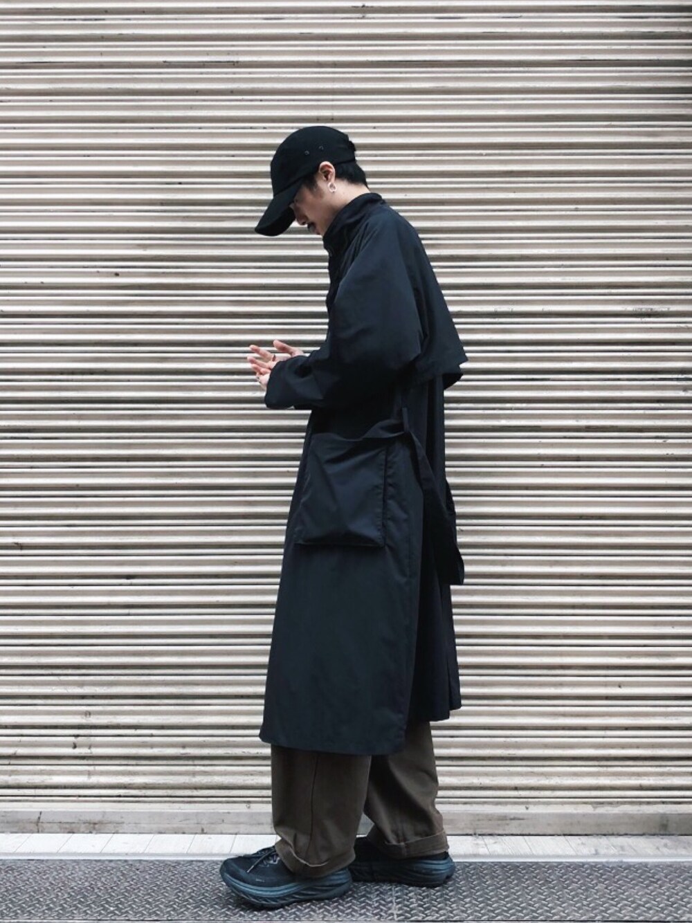 KOU SUEMATSU(Lui's/EX/store TOKYO)のトレンチコート「スタンド ビッグシルエット コート」を使ったコーディネート