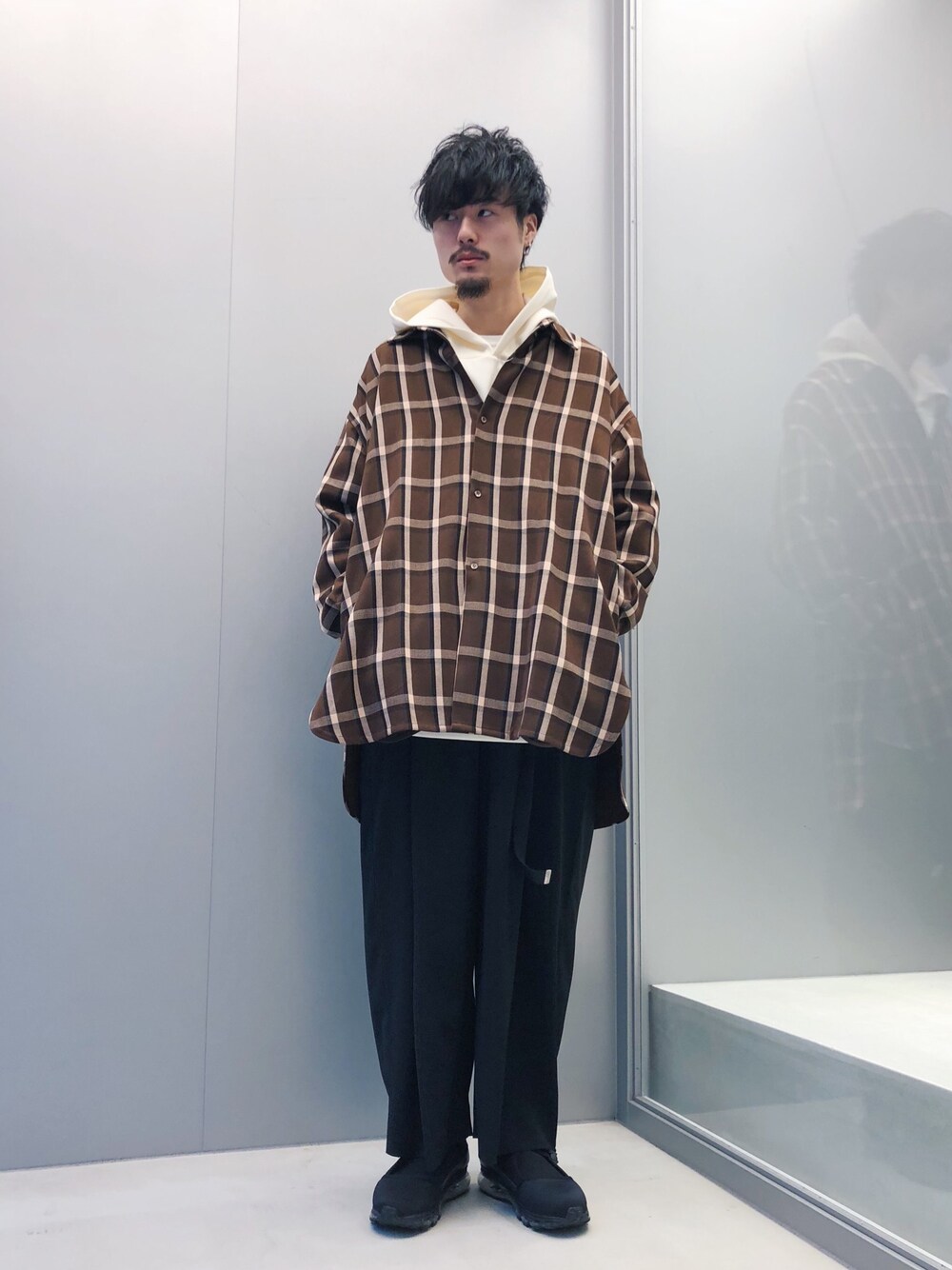 KOU SUEMATSU(Lui's/EX/store TOKYO)のシャツ/ブラウス「サイドスリットチェック ビッグシルエット シャツコート」を使ったコーディネート