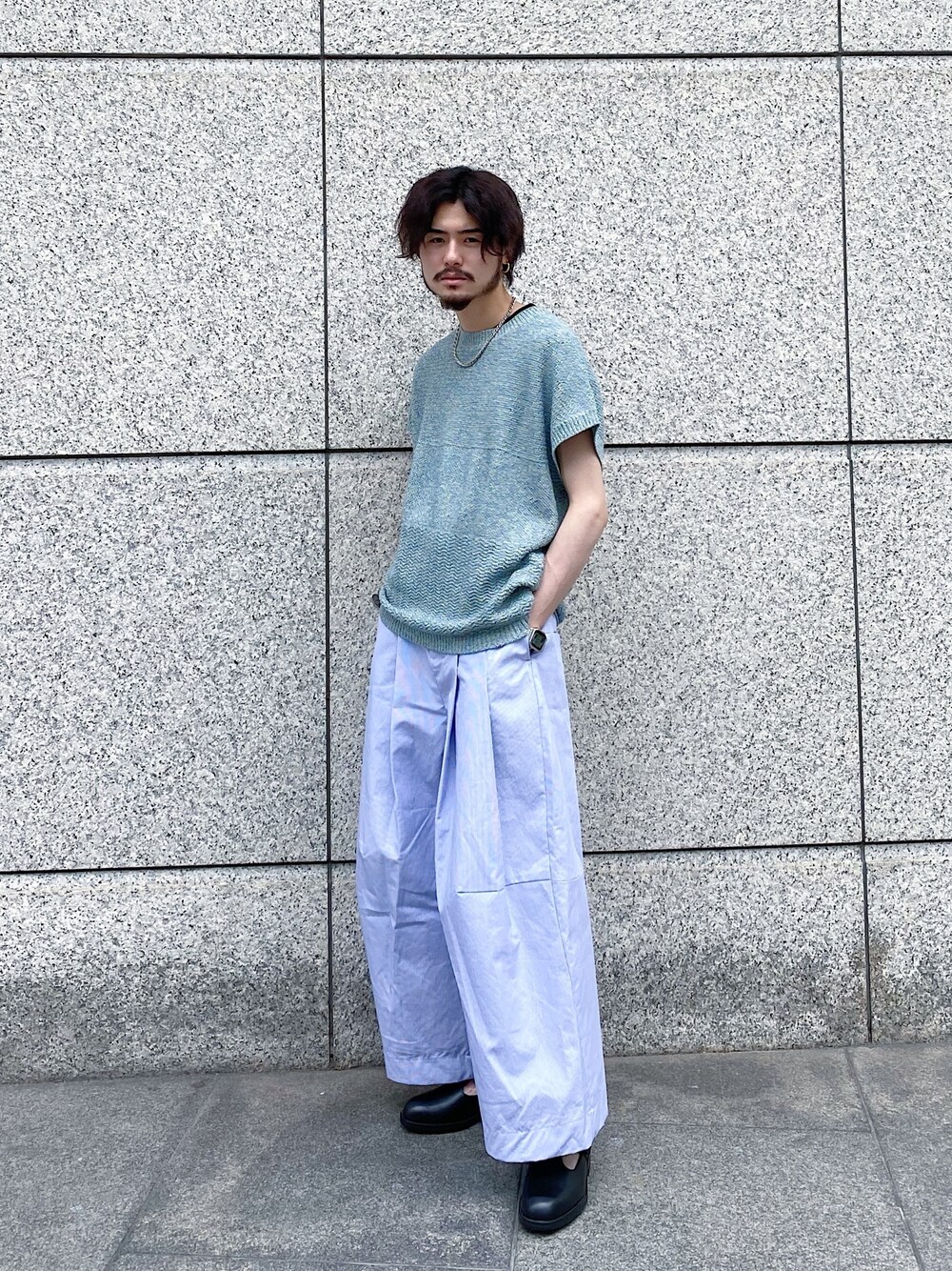 KOU SUEMATSU(Lui's/EX/store TOKYO)のベスト「ミックスワイドニットベスト」を使ったコーディネート