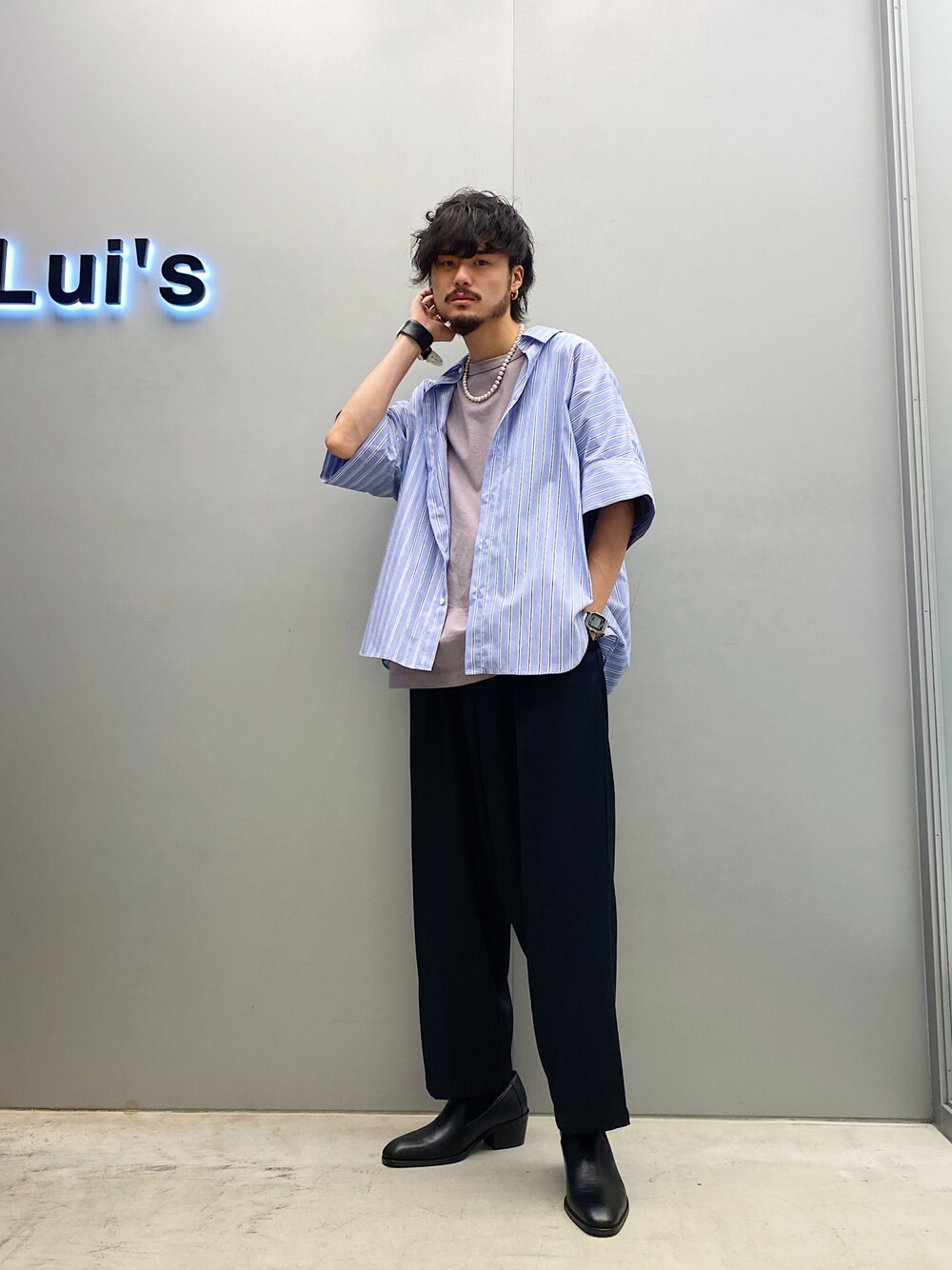 KOU SUEMATSU(Lui's/EX/store TOKYO)のシャツ/ブラウス「ストライプドルマンデザイン ビッグシャツ」を使ったコーディネート
