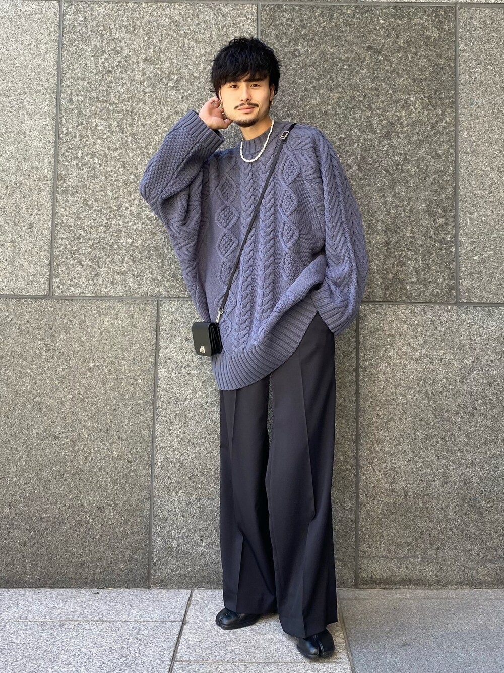 KOU SUEMATSU(Lui's/EX/store TOKYO)のニット/セーター「ケーブル編みドルマンニット」を使ったコーディネート