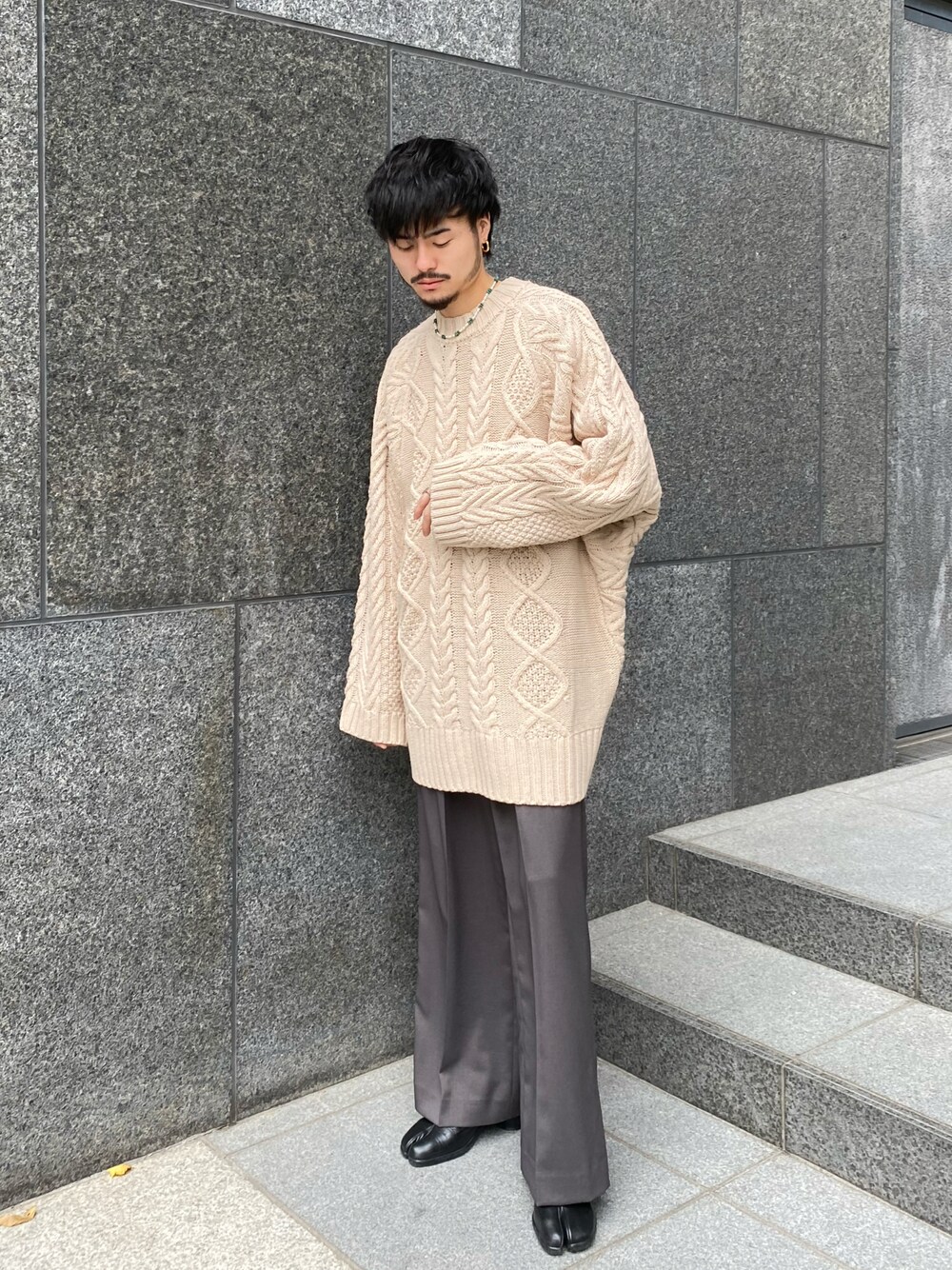 KOU SUEMATSU(Lui's/EX/store TOKYO)のニット/セーター「ケーブル編みドルマンニット」を使ったコーディネート