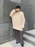 可愛いイメージのベージュのニットですけど 振り切ったオーバーサイズなのでカッコよく着れておすすめです!