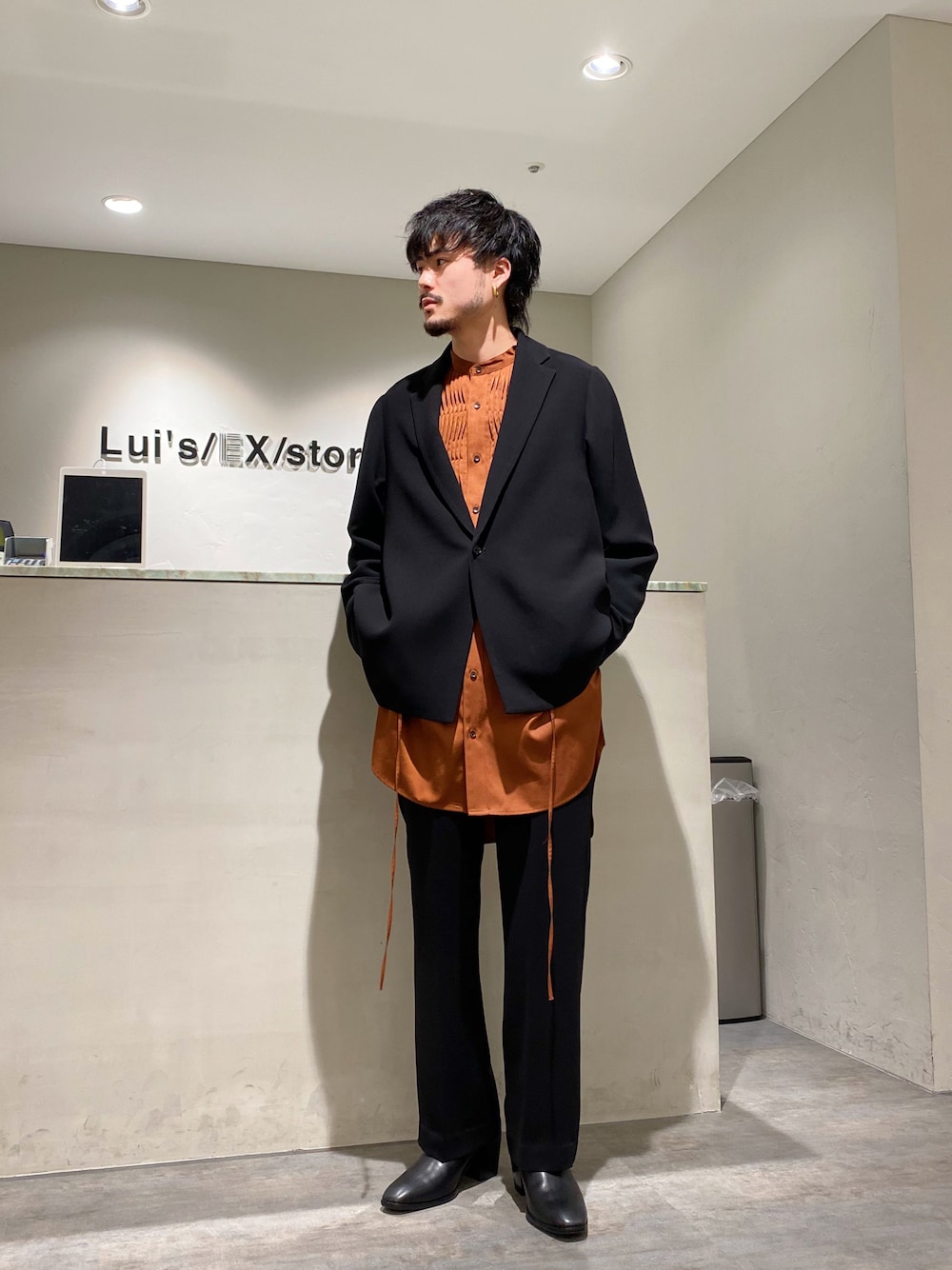 KOU SUEMATSU(Lui's/EX/store TOKYO)のシャツ/ブラウス「【TAUPE / トープ】22SS サテンスモッキングロングシャツ」を使ったコーディネート