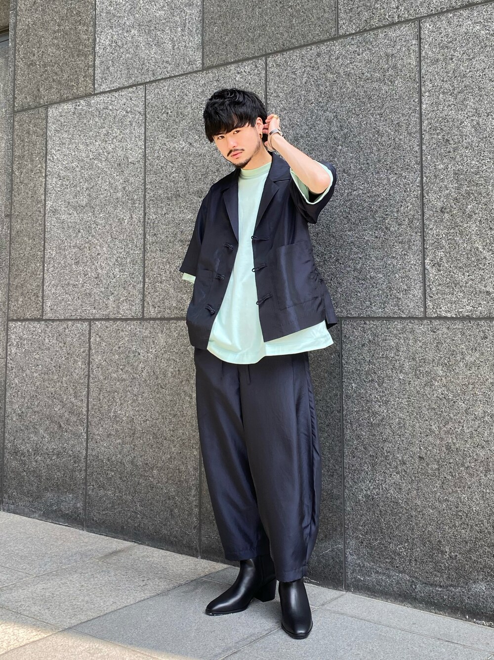 TAUPEの夏のセットアップ 夏に着れるセットアップは他と差が付くアイテムです。 夏本番はサンダルと合わせたいですね。 シャツ / 1 パンツ / 1 ブーツ / 40