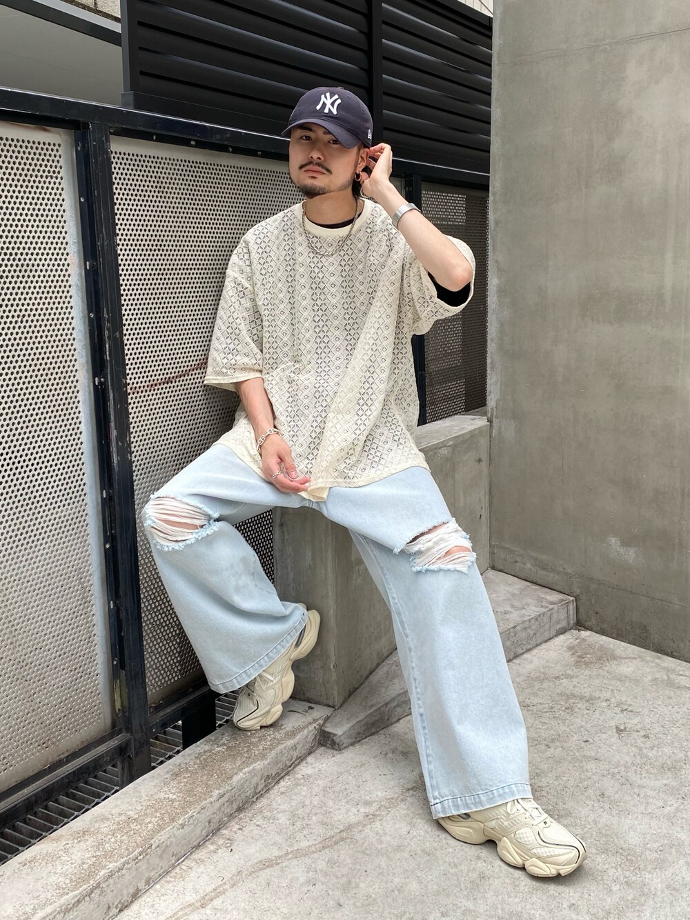 KOU SUEMATSU(Lui's/EX/store TOKYO)のTシャツ/カットソー「6分袖クロシェ編みプルオーバー」を使ったコーディネート