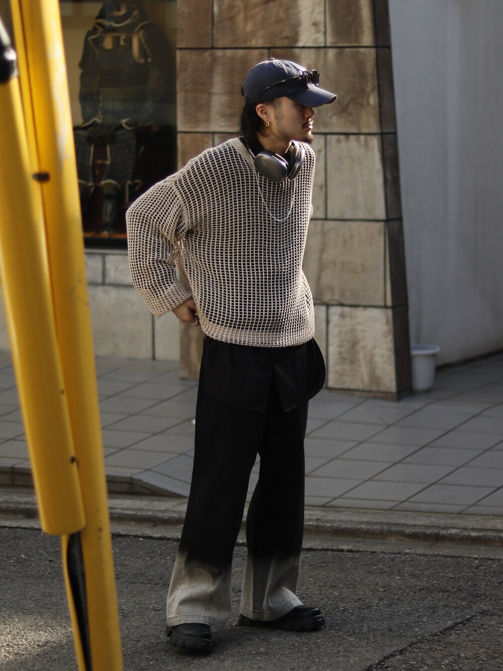 KOU SUEMATSU(Lui's/EX/store TOKYO)のニット/セーター「クロスメッシュニット」を使ったコーディネート