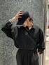 172cm 52kg 春のオールブラックスタイル✔️ このセットアップは透け感がいやらしくなくて大人の方も着やすいし何より着心地が抜群すぎます。