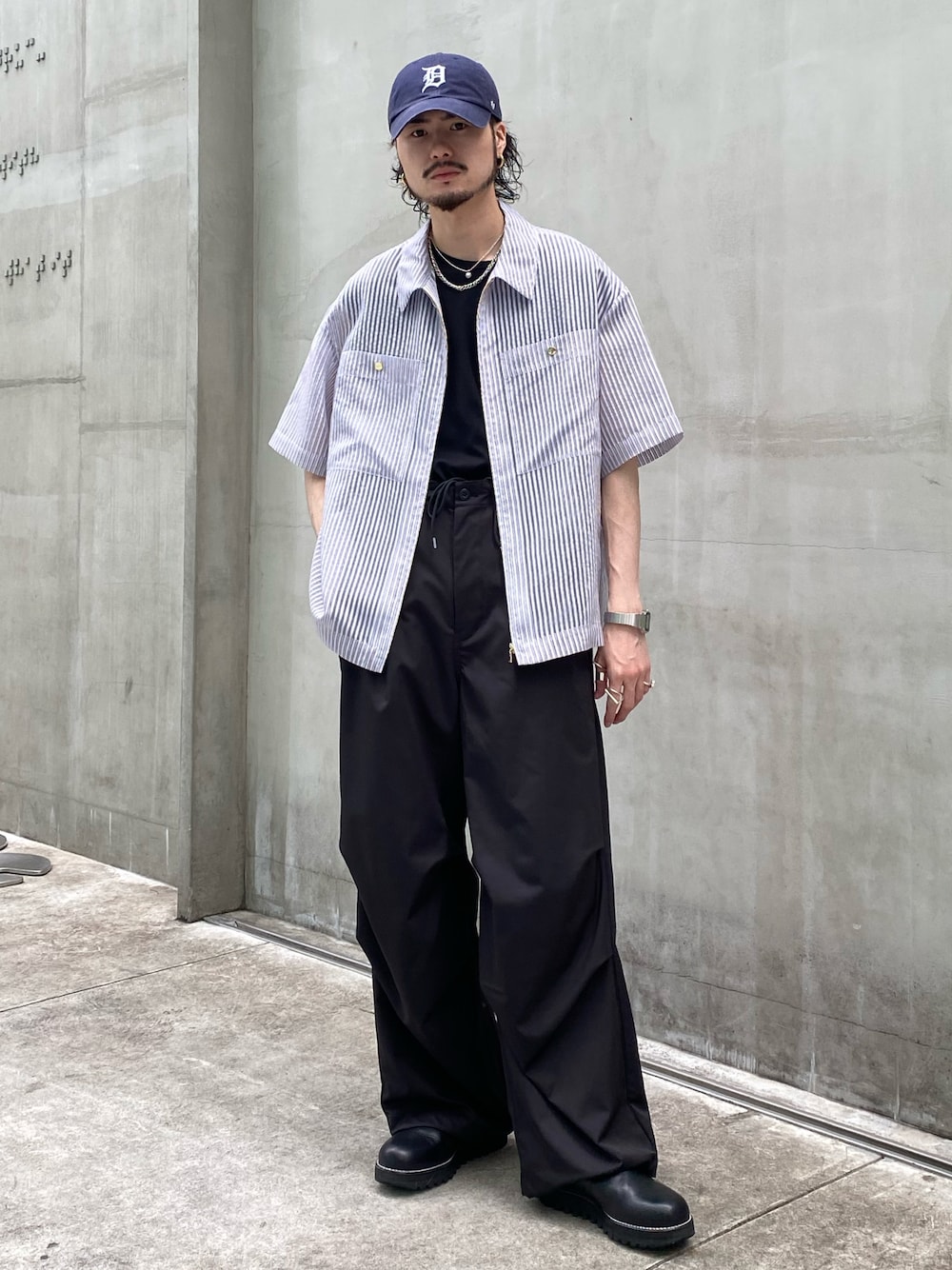 CULLNI exclusive 2nd 入荷です! ◎ストライプZIP s/s シャツ 今の変わりやすい気温の羽織にもぴったりだし、夏はノースリーブで着てもメインで使えます! しかもこのシャツ少し透け感があるんです!! めっちゃくちゃおすすめだし恐らく早く旅立つと思うのでお早めに! 【着用サイズ 1】 ◎コンバーチブルパラシュートパンツ 今回このパンツを選んだ理由は"キレイめ"になりすぎたくないから! このパンツはナイロンみたいにシャカシャカ過ぎないし、適度な張りと光沢があるので "少しキレイめ"くらいの印象でカジュアルにしてくれる最高のパンツです! 【着用サイズ S】 172cm 52kg