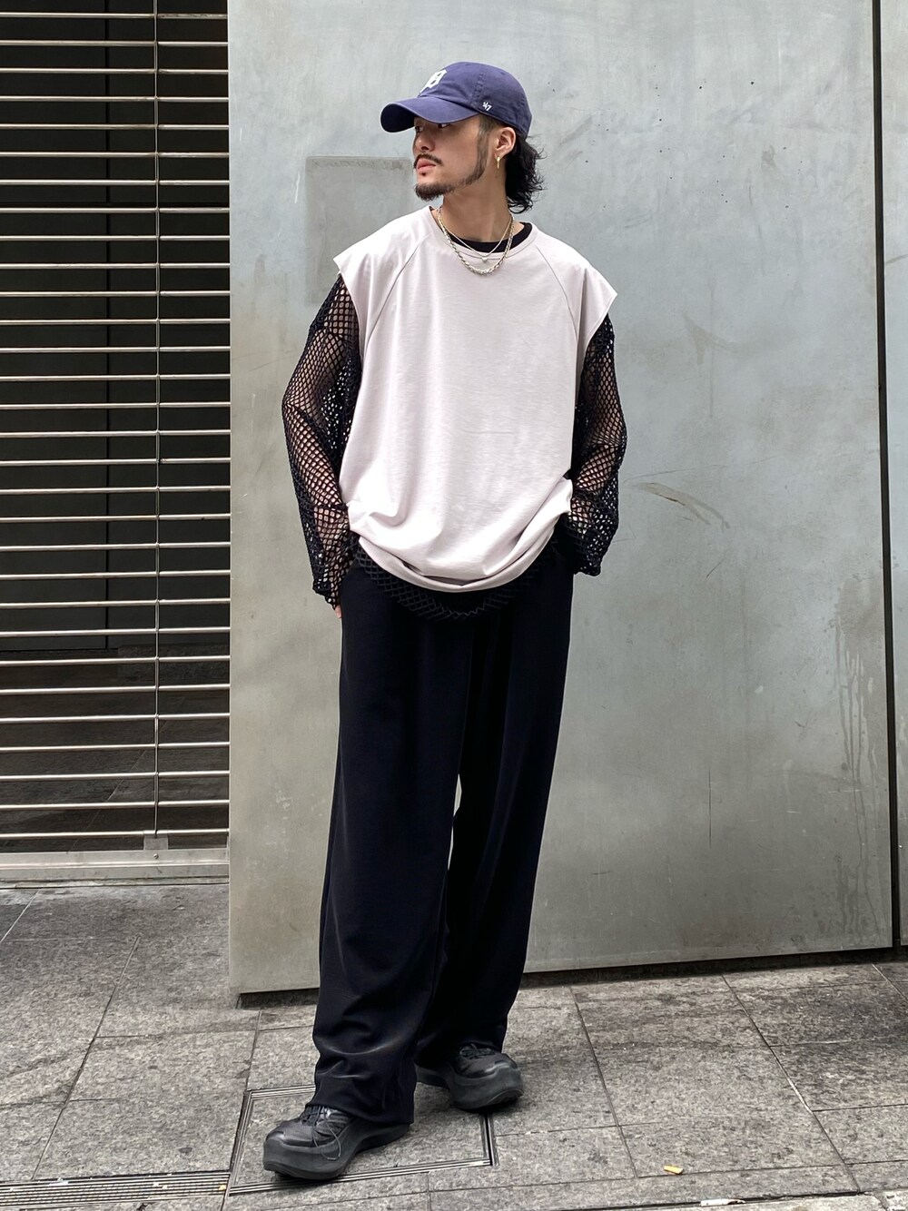 着用スタッフ 172cm 52kg / 骨格ナチュラル 【ノースリーブ】フリーサイズ このノースリーブはインナーや1枚じゃなくてレイヤードで使うのもおすすめです! 素材も最高です。 【メッシュT】フリーサイズ Tシャツやシャツなんでもレイヤードしやすいように袖口や裾はリブ仕様になっていないので汎用性が高いです! 【パンツ】S 程よいストレートで少しワイドなのでトップスのサイズ感を選ばず使いやすいです!