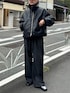着用スタッフ 172cm 52kg / 骨格ナチュラル [ブルゾン] サイズ1 漢っぽいB3 着丈が短く身幅広いので今の気分にぴったりなシルエットです! [パンツ] サイズS どんなトップスにも合うシルエット。 ウエストがイージー仕様で楽に穿けます! [シューズ] サイズ41 ほどよく綺麗目にまとまるシューズです。 ヒールも高いので身長盛れます!