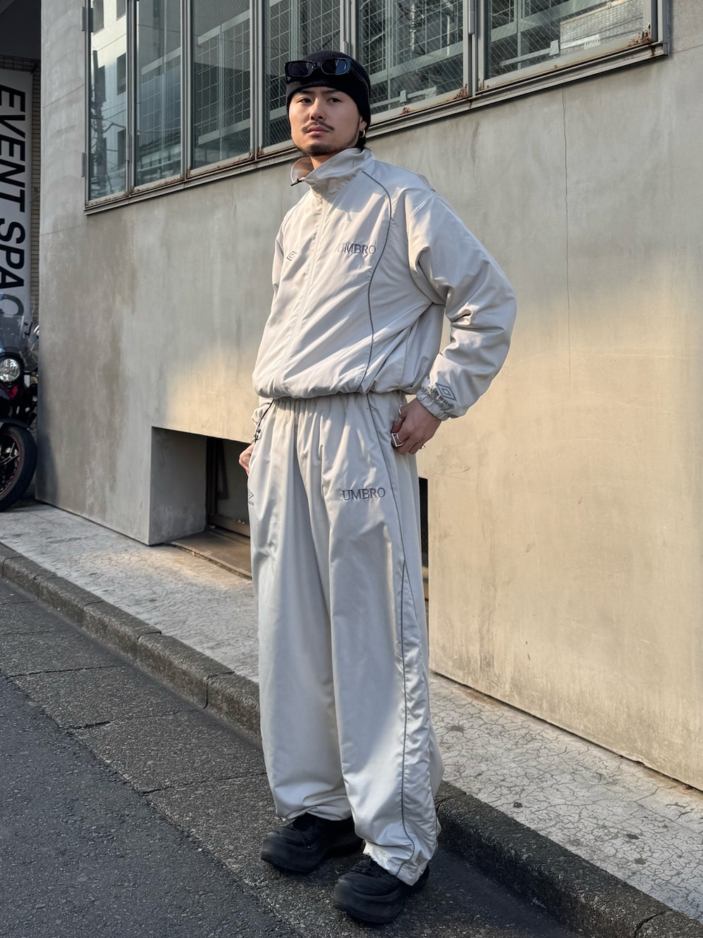 着用スタッフ 172cm 52kg / 骨格ナチュラル [ジャケット] サイズS UMBROコラボのトラックジャケット。 個人的にホワイトカラーもなかなか渋いと思います! 人と差をつけたい方はおすすめです! [パンツ] サイズM パンツは太めにオーバーに着たいので敢えてMサイズで着用。 170前後の方であればSが無難です!