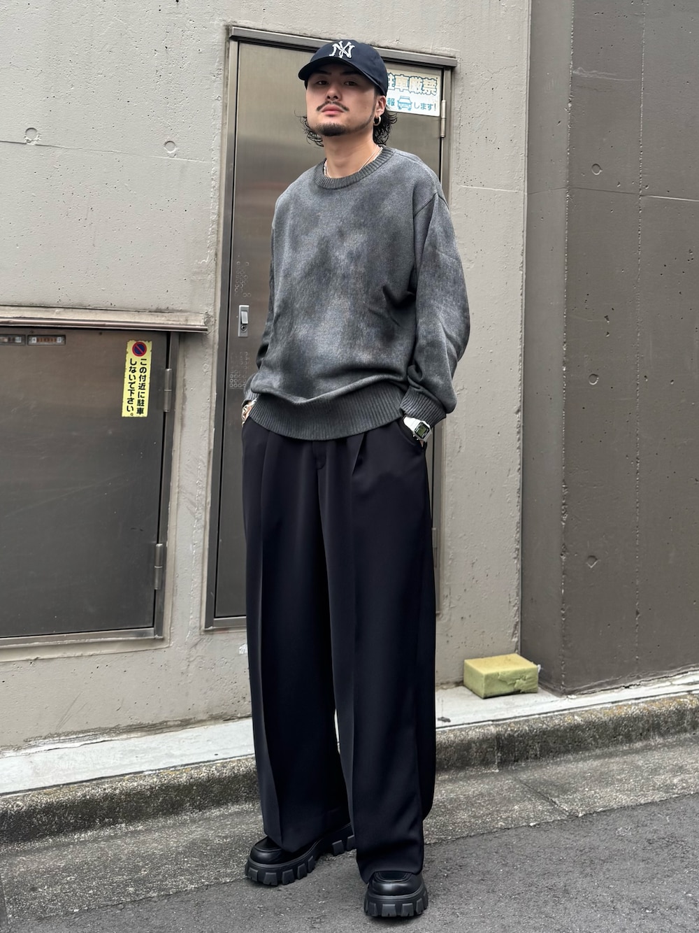 KOU SUEMATSU(Lui's/EX/store TOKYO)のニット/セーター「スプレープリントクルーネックニット」を使ったコーディネート