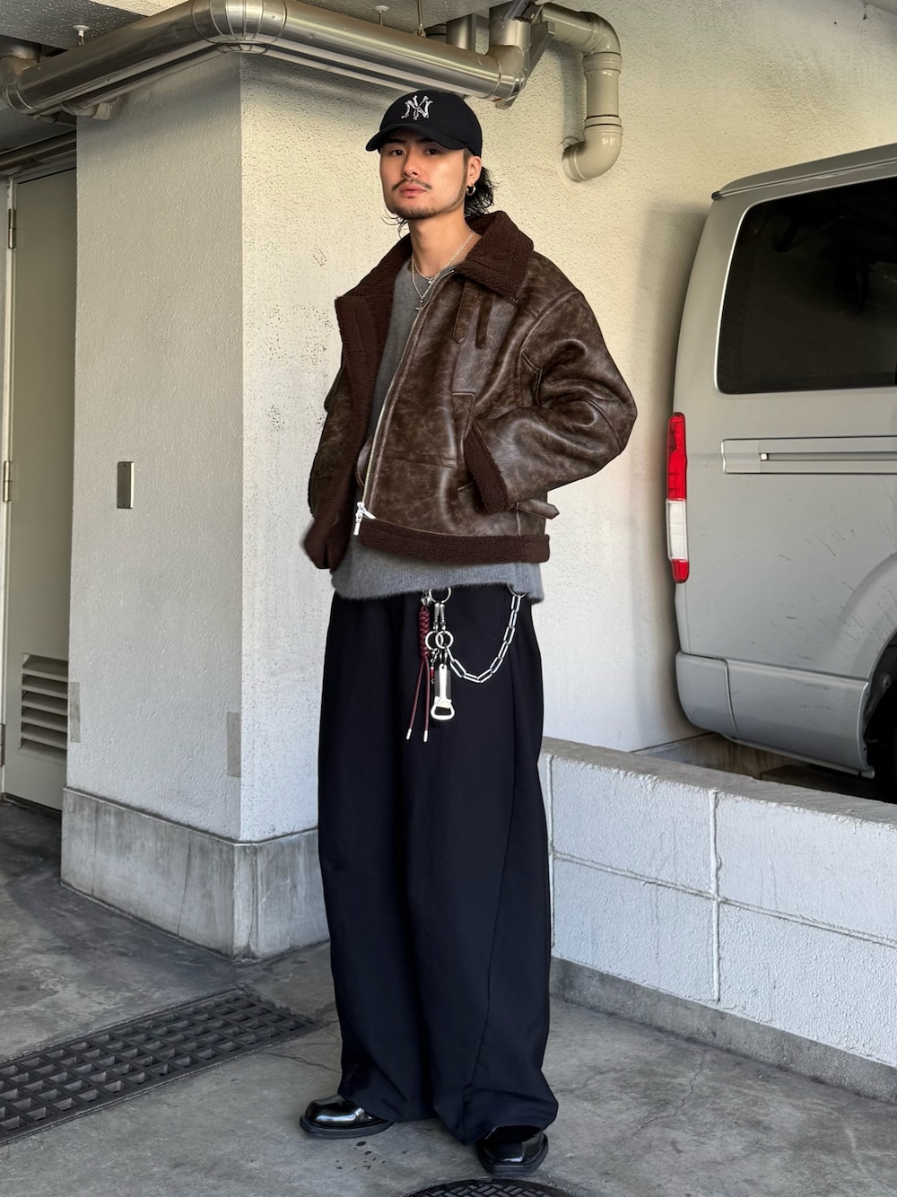 172cm 53kg / 骨格ナチュラル [ブルゾン] サイズ1 クロップド丈のフェイクムートンブルゾン。 素材の表面感もヴィンテージライクでカッコよく、なにより着丈の短さがカッコ良すぎます。 コスパもいいので買って後悔ないアイテムです。 [ニット] サイズS wool100%なのに肌がチクチクしない最高のニット。 ふんわり柔らかく、シルエットも綺麗なので 上品なニットが欲しい方や大人の方におすすめです。 [パンツ] サイズS 定番のカーブパンツ。 オールシーズン使えます。 ショートのアウターにはこれ一択なくらい使いやすいです。 [チェーン] サイズフリー コスパが高いウォレットチェーン。 ショート丈のスタイリング時は 腰回りのアクセントにおすすめです。
