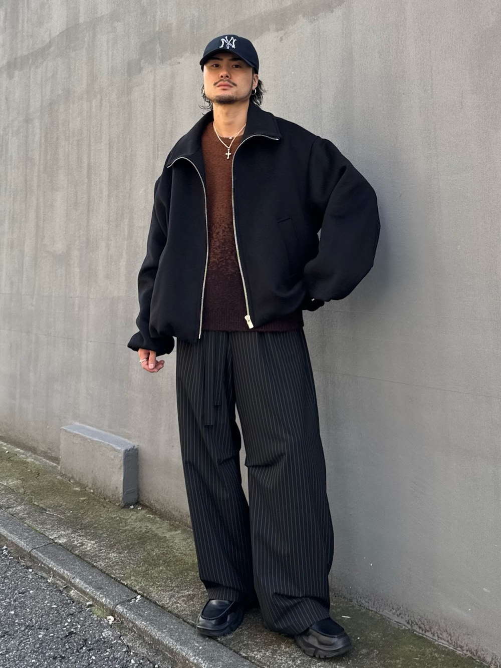 172cm 53kg / 骨格ナチュラル [ブルゾン] サイズS ハイクオリティな生地のジップブルゾン。 この生地はLui'sでオリジナルの生地なので他では買えません。 カシミヤのような肌触りで形もブルゾンタイプで袖口も裾も絞れる仕様なので 体型関係なく着用いただけます。 [ニット] サイズ1 差し色にちょうどいいニット。 明るすぎないオレンジなので、1枚で着てもくどくないです。 フワッとして暖かいニットです。 [パンツ] サイズS シルエットが細すぎず太すぎず合わせすく、脚長効果もあるパンツ。 ウエストがイージー仕様で抜け感があってカッコいいアイテムです。 [シューズ] サイズ41 適度に厚底で履きやすいローファー。 革靴初心者にもオススメのアイテムです。