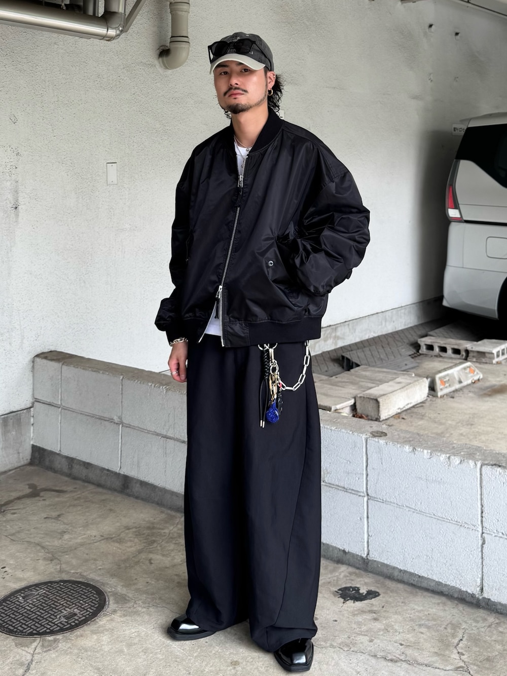 KOU SUEMATSU(Lui's/EX/store TOKYO)のMA-1「【Neucon/ニューコン】シャーリングアームボリュームナイロンMA-1」を使ったコーディネート