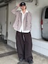 KOU SUEMATSU(Lui's/EX/store TOKYO)のスラックス「ベルテッドダブルクロスバルーンカーブスラックスパンツ」を使ったコーディネート