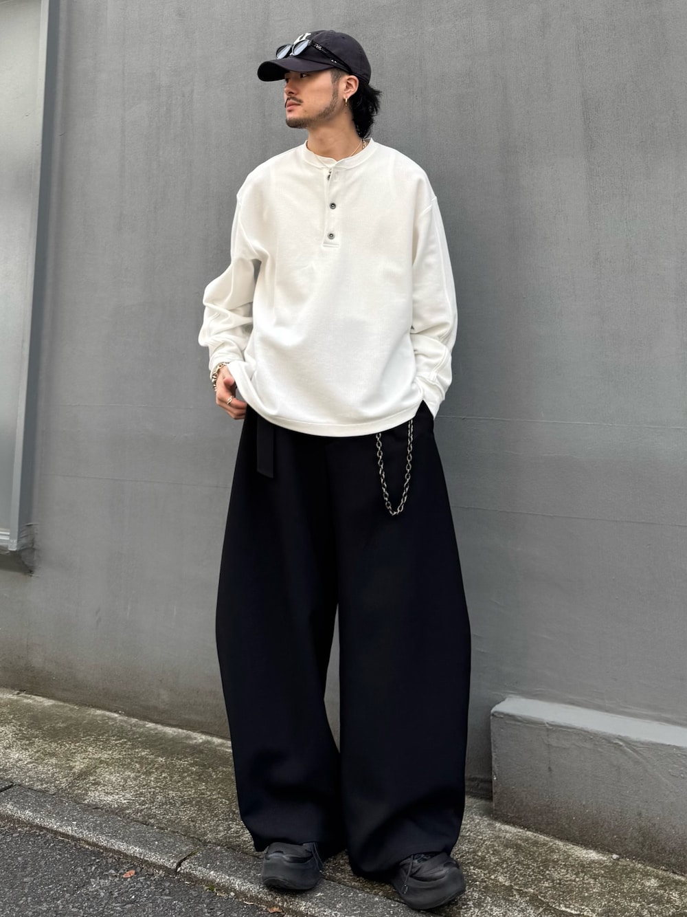 172cm 53kg / 骨格ナチュラル [トップス] フリーサイズ 鹿の子なので肌に張り付かずドライな着心地のヘンリーネック。 サイズ感も落ち着き感のあるオーバーサイズで年齢問わずおすすめです! [パンツ] Sサイズ着用 万能なカーブパンツ。 様々なトップスに合わせやすくておすすめです。 [チェーン] 腰回りのアクセントにおすすめ。 あるだけでおしゃれ見えしやすいです!