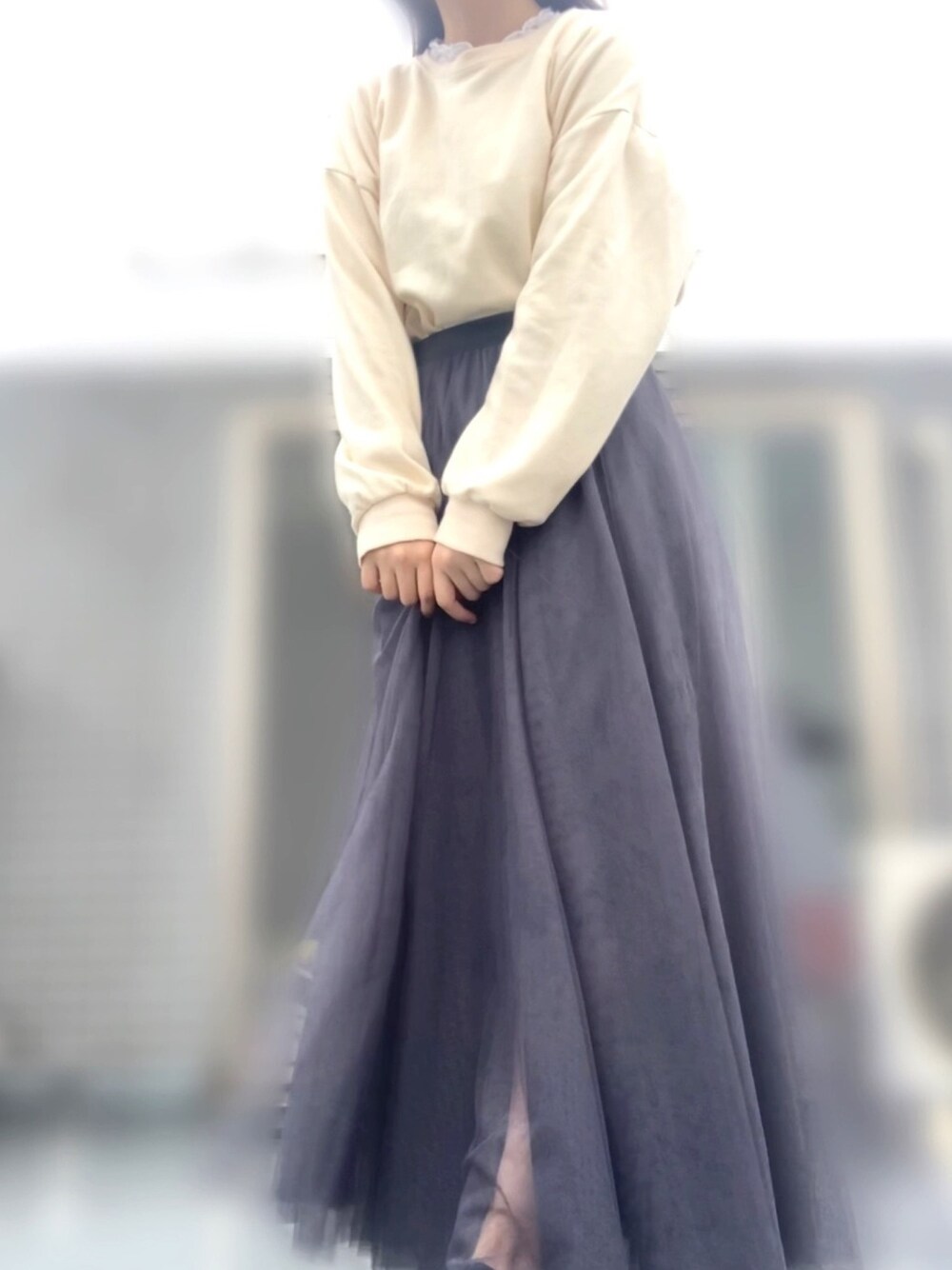 はなまるのスカート「[低身長サイズ有]チュールロングスカート」を使ったコーディネート
